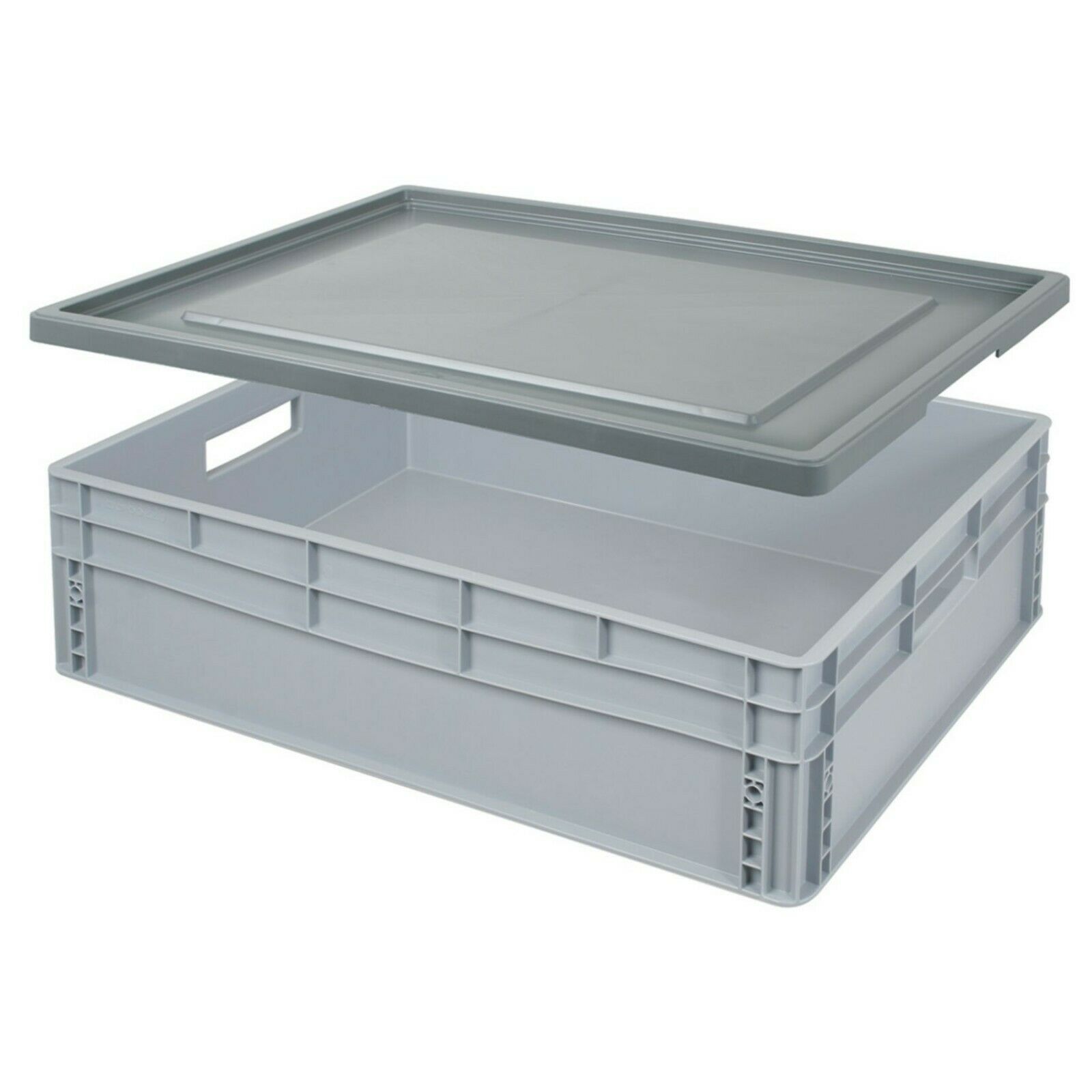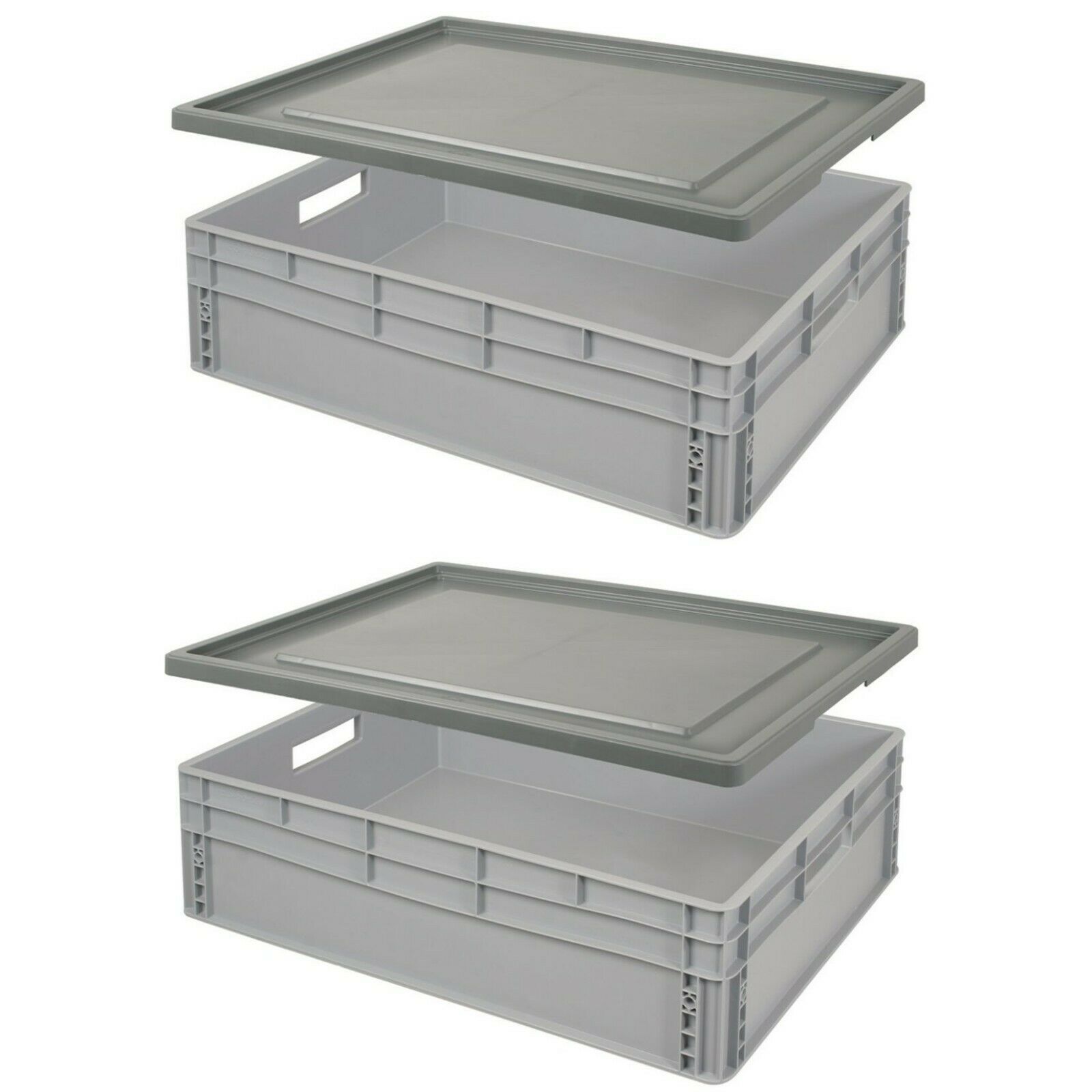 2 Eurobehälter mit Stülpdeckel, LxBxH 800x600x220 mm, 87 Liter, Durchfassgriffe
