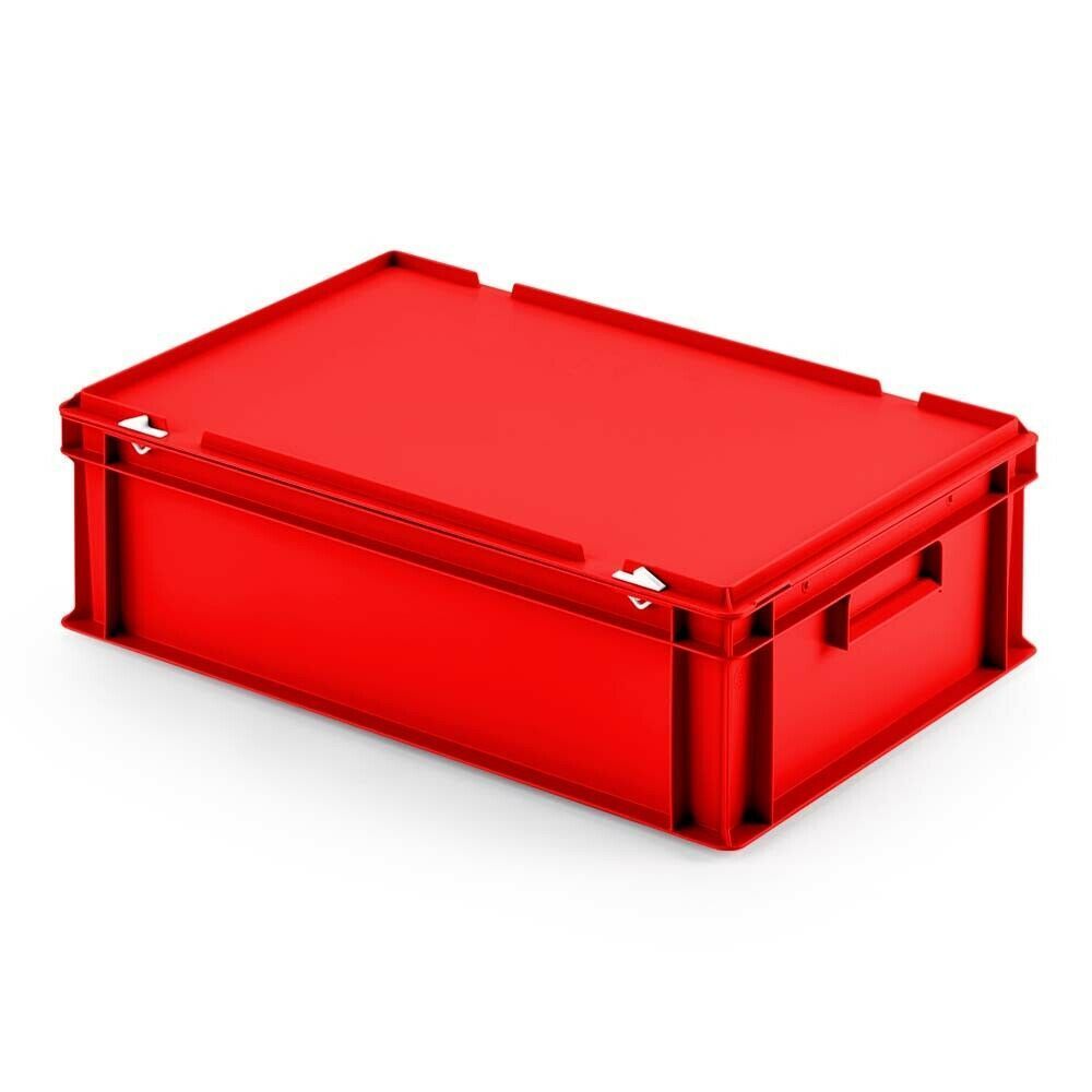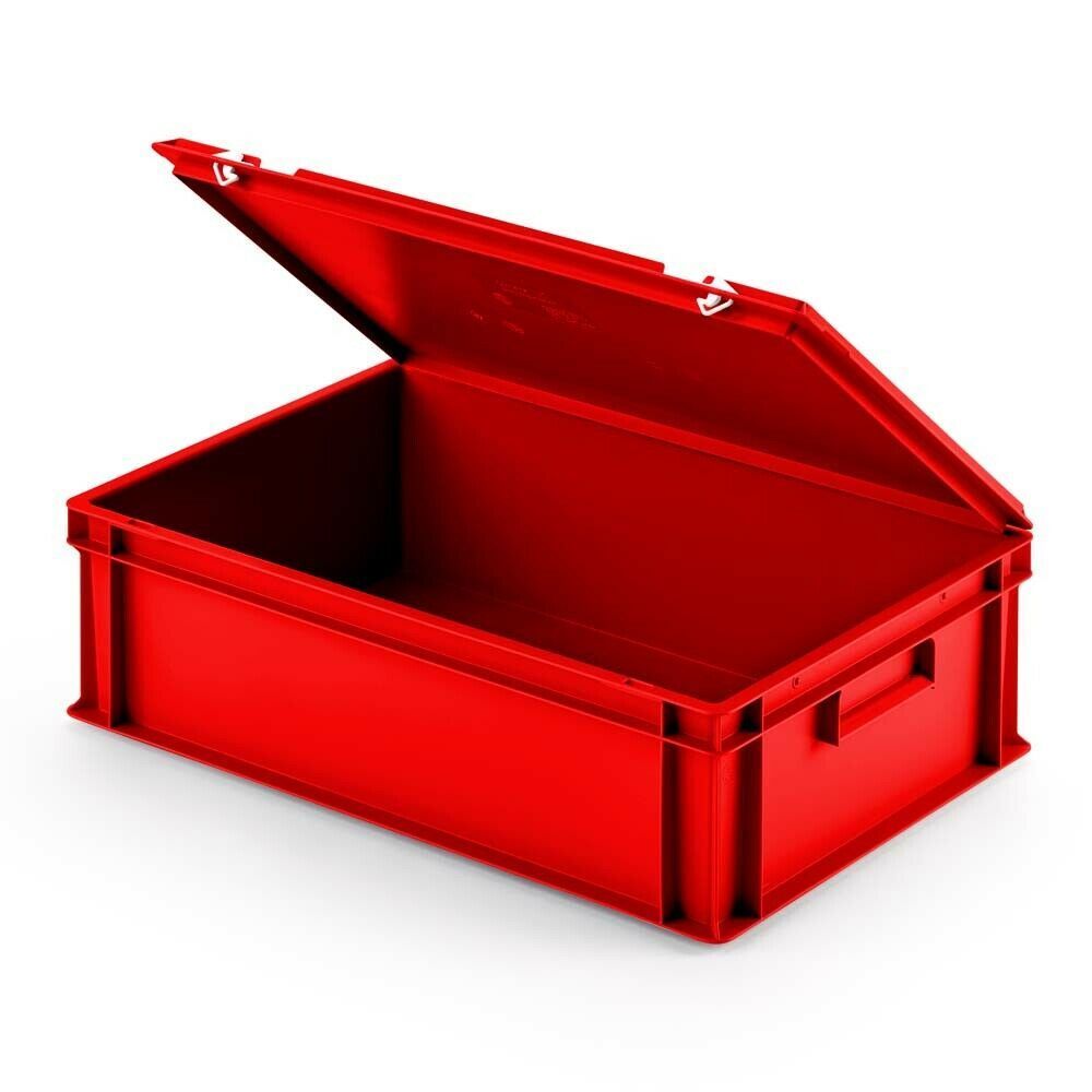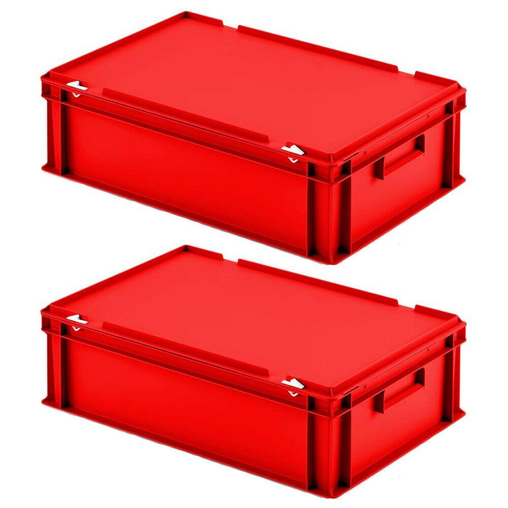2 Eurobox mit Scharnierdeckel, LxBxH 600x400x185 mm, PP, lebensmittelecht, rot