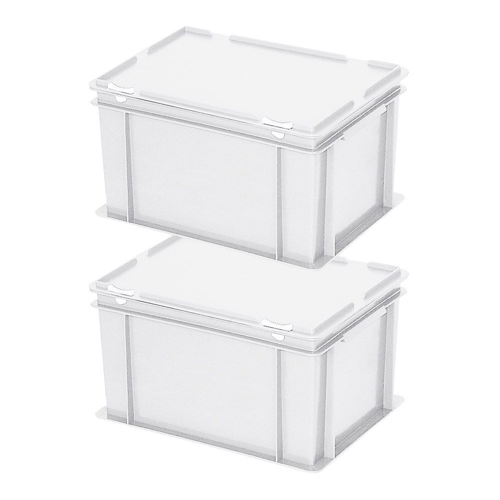 2 Euroboxen mit Deckel, LxBxH 400x300x230 mm, 21 Liter, weiß