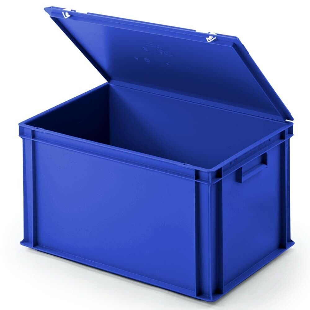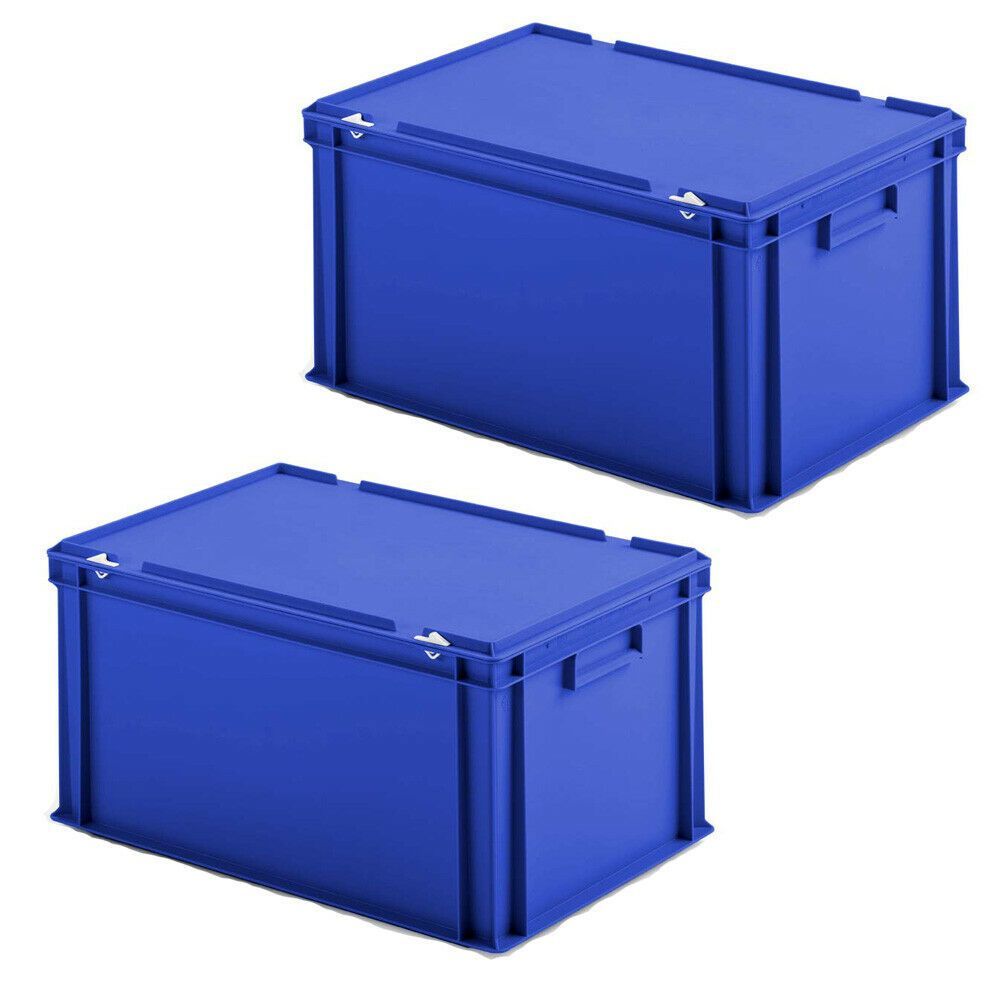 2 Euroboxen mit Scharnierdeckel, LxBxH 600x400x330 mm, PP, lebensmittelecht, blau