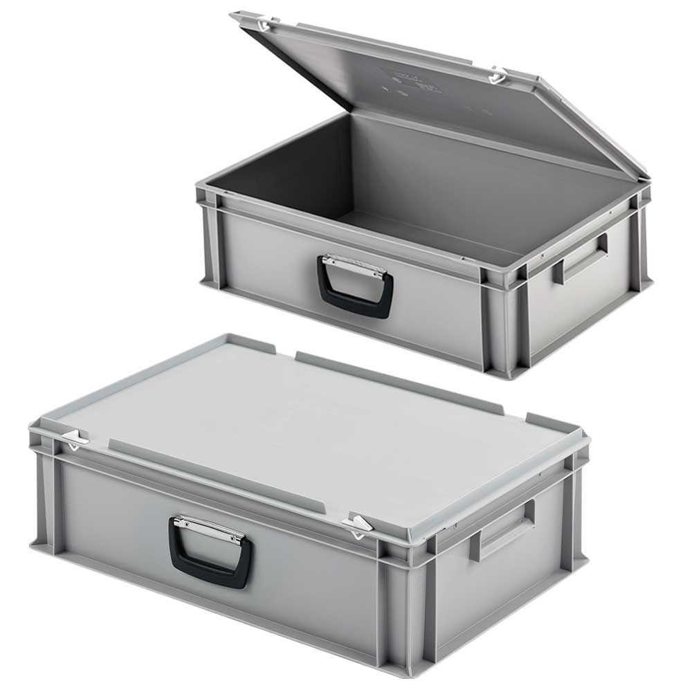 2 Eurokoffer / Gerätekoffer, stapelbar, LxBxH 600x400x185 mm, PP, grau
