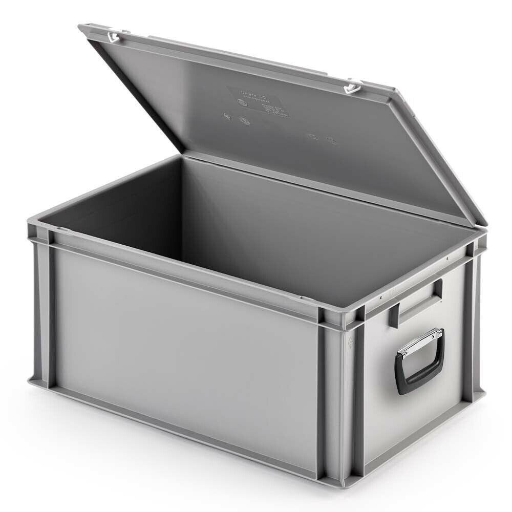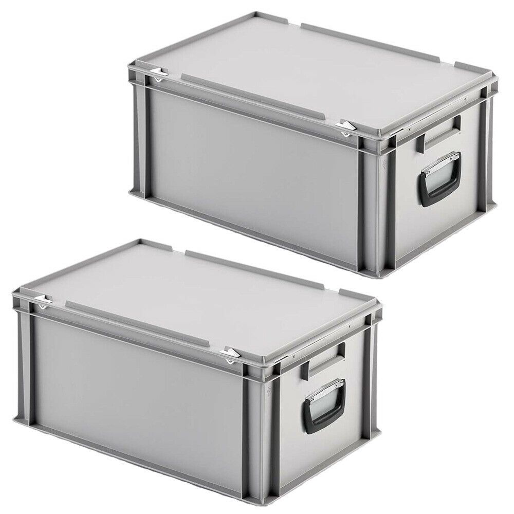 2 Eurokoffer / Gerätekoffer, stapelbar, LxBxH 600x400x290 mm, PP, grau