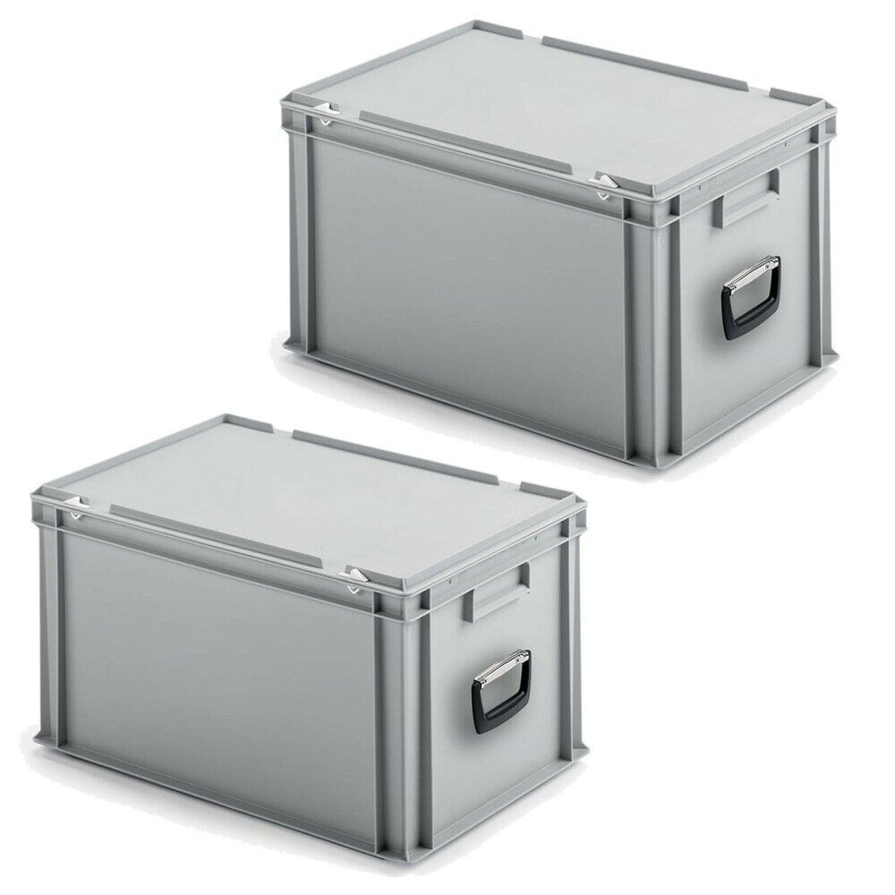 2 Eurokoffer / Gerätekoffer / Transportkoffer, LxBxH 400x300x330 mm, grau, PP