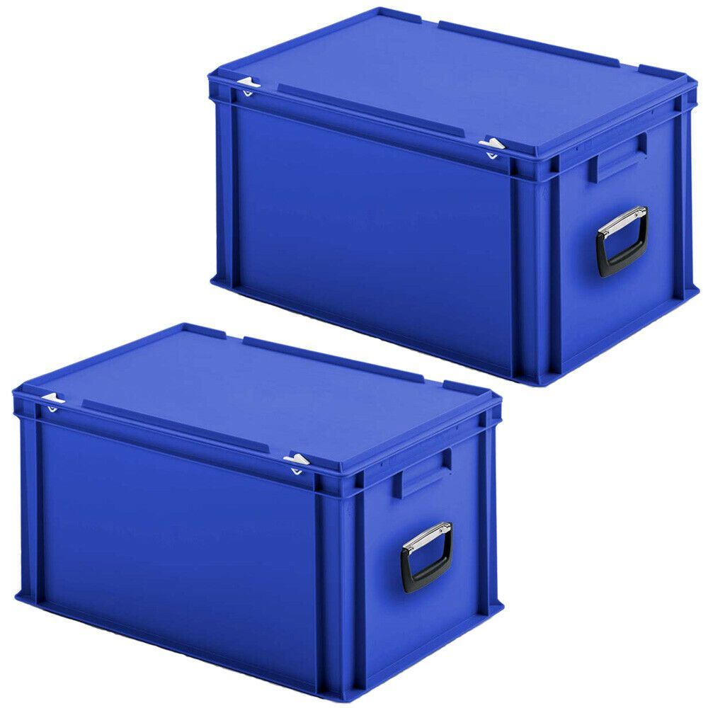 2 Eurokoffer/ Transportkoffer mit 2 Tragegriffen, LxBxH 400x300x330 mm, PP, blau