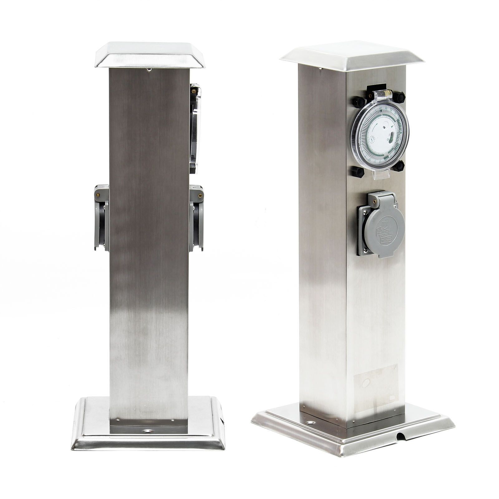 2-fach Außensteckdose Steckdosensäule Edelstahl Outdoor Außen Zeitschaltuhr IP44