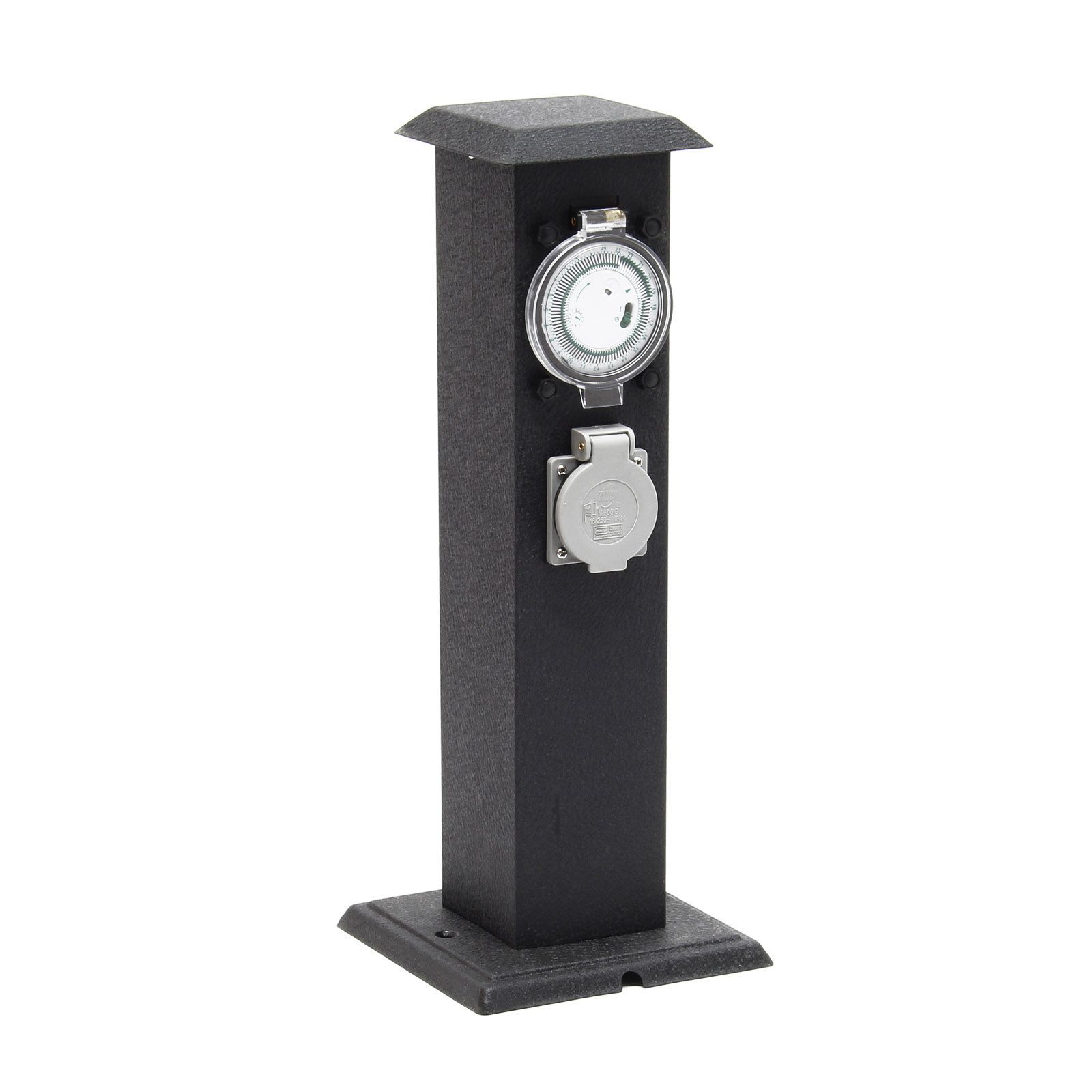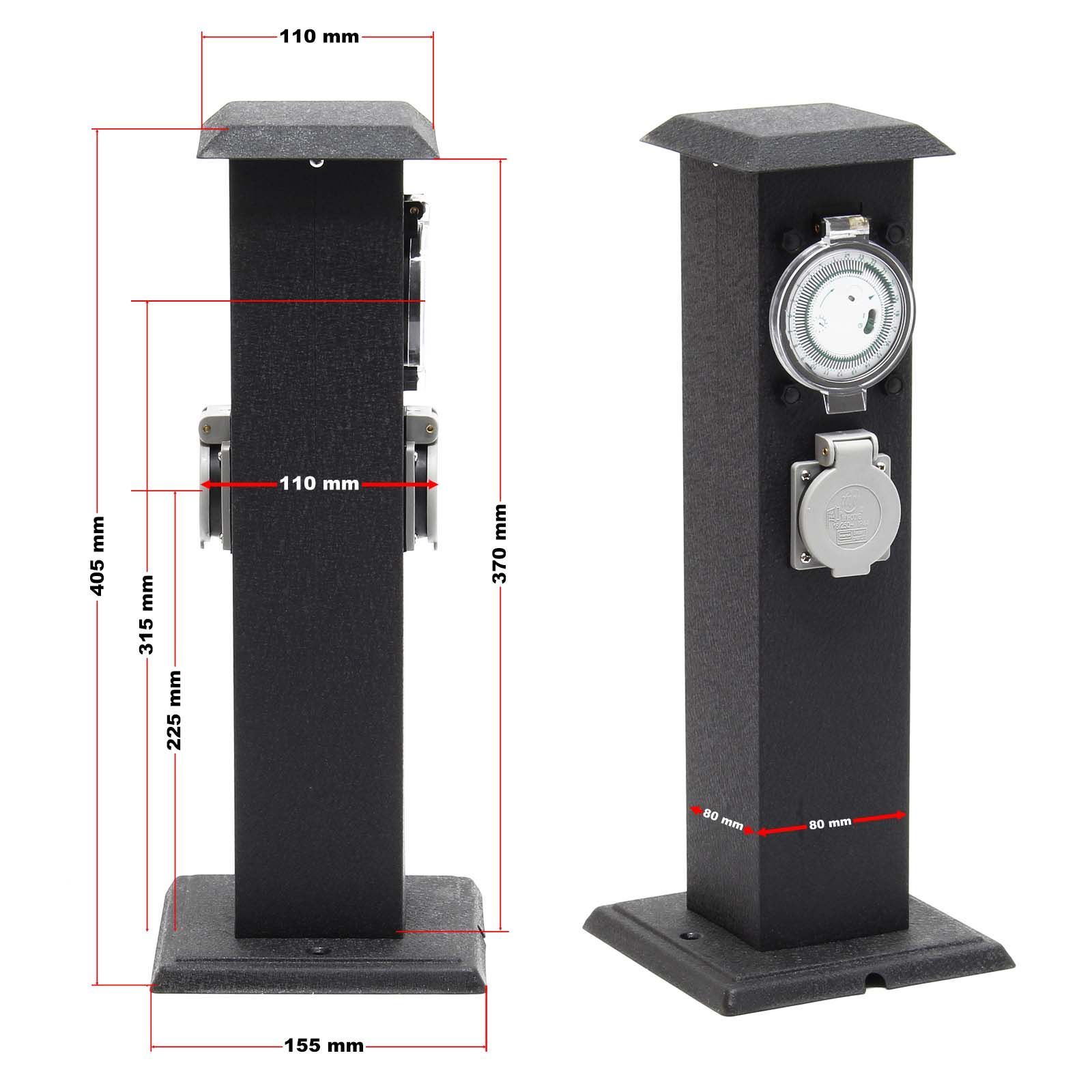 2-fach Außensteckdose Steckdosensäule Metall Outdoor Außen Zeitschaltuhr IP44