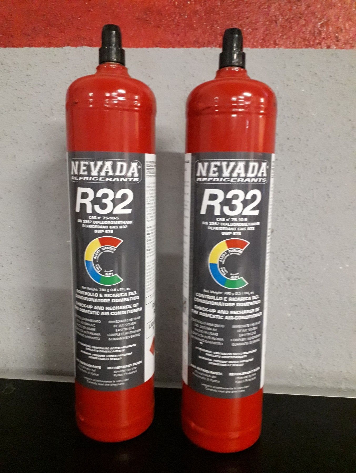2 Flaschen + Manometer- Kältemittel GAS R 32 Gesamtgas 2000 ml (Nettogewicht 1560 g)