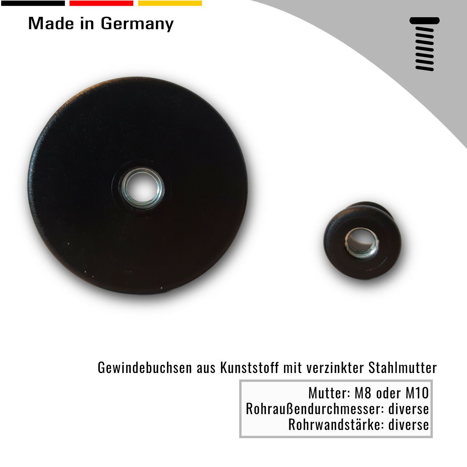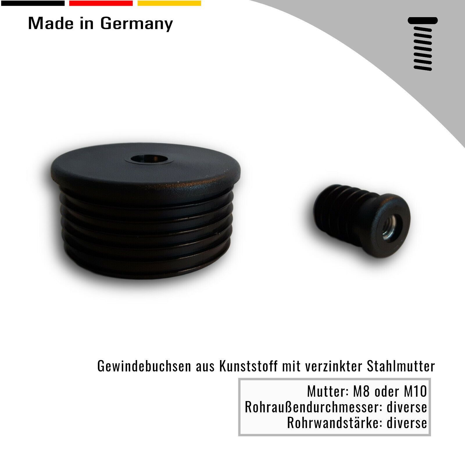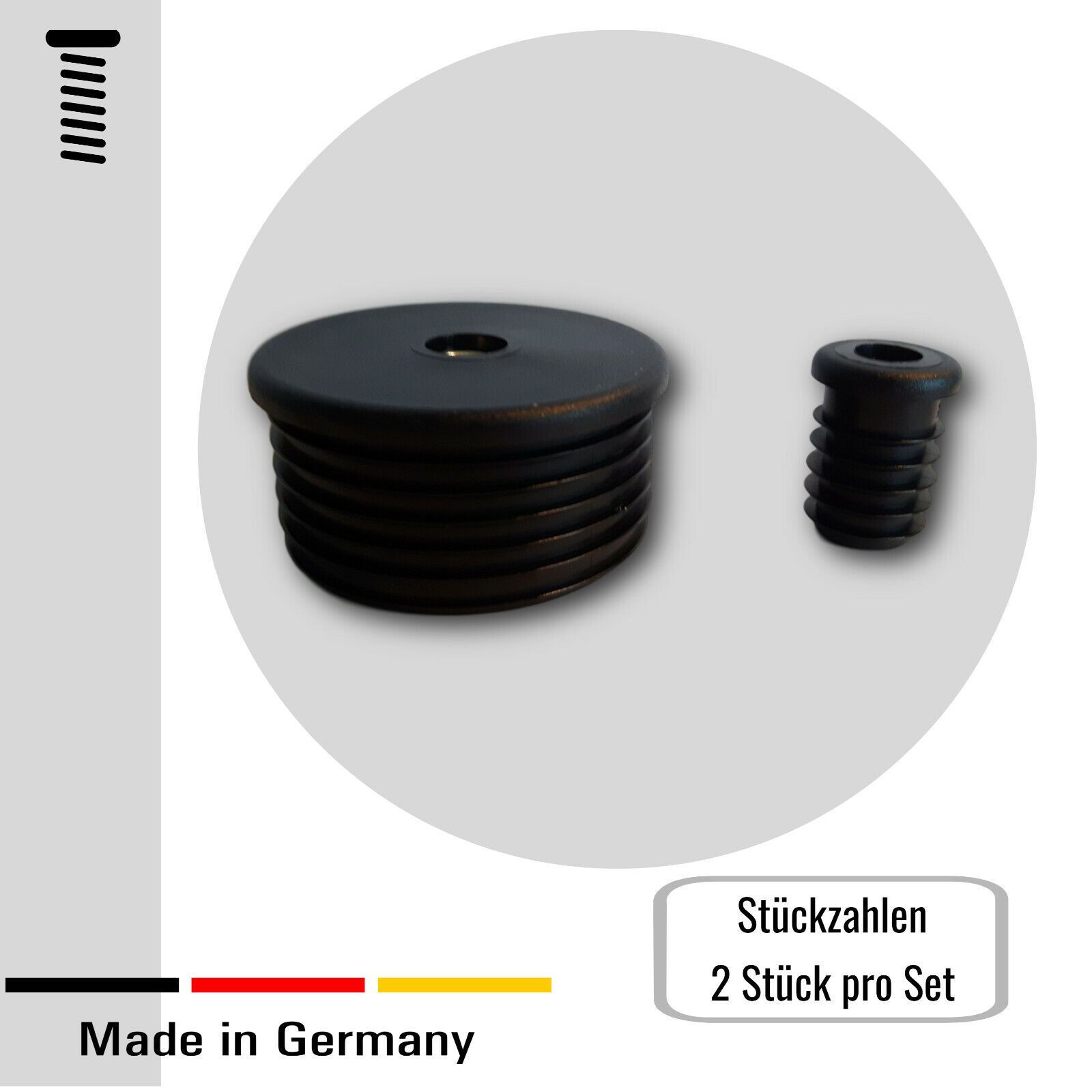 2 Gewindestopfen/ Buchsen/ Gewindehülse Rundrohre runde Rohre 22-40 mm schwarz
