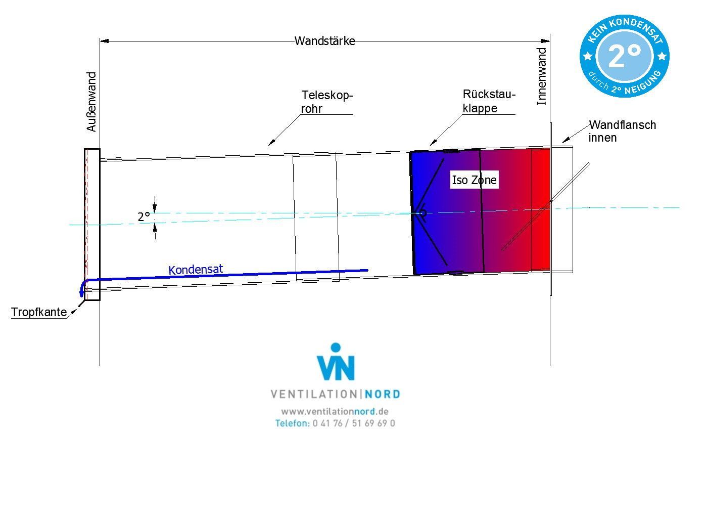Der Mauerkasten Ø150 mit sicherem Kondensatablauf , und Tropfkante zum Schutz der Fassade. Für Einbau in Kernbohrung Ø160 - Ø162mm mit 1 bis 3 Grad Gefälle nach außen. In diesem Produkt stecken die Kundenwünsche der letzten fünf Jahre, exclusiv bei VentilationNord Mauerkasten WS