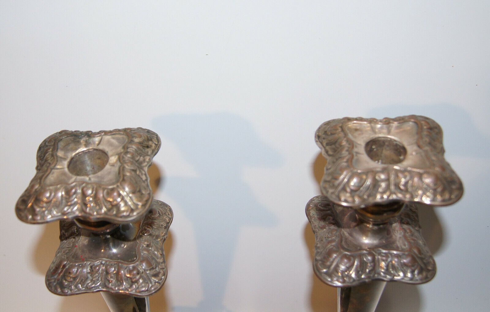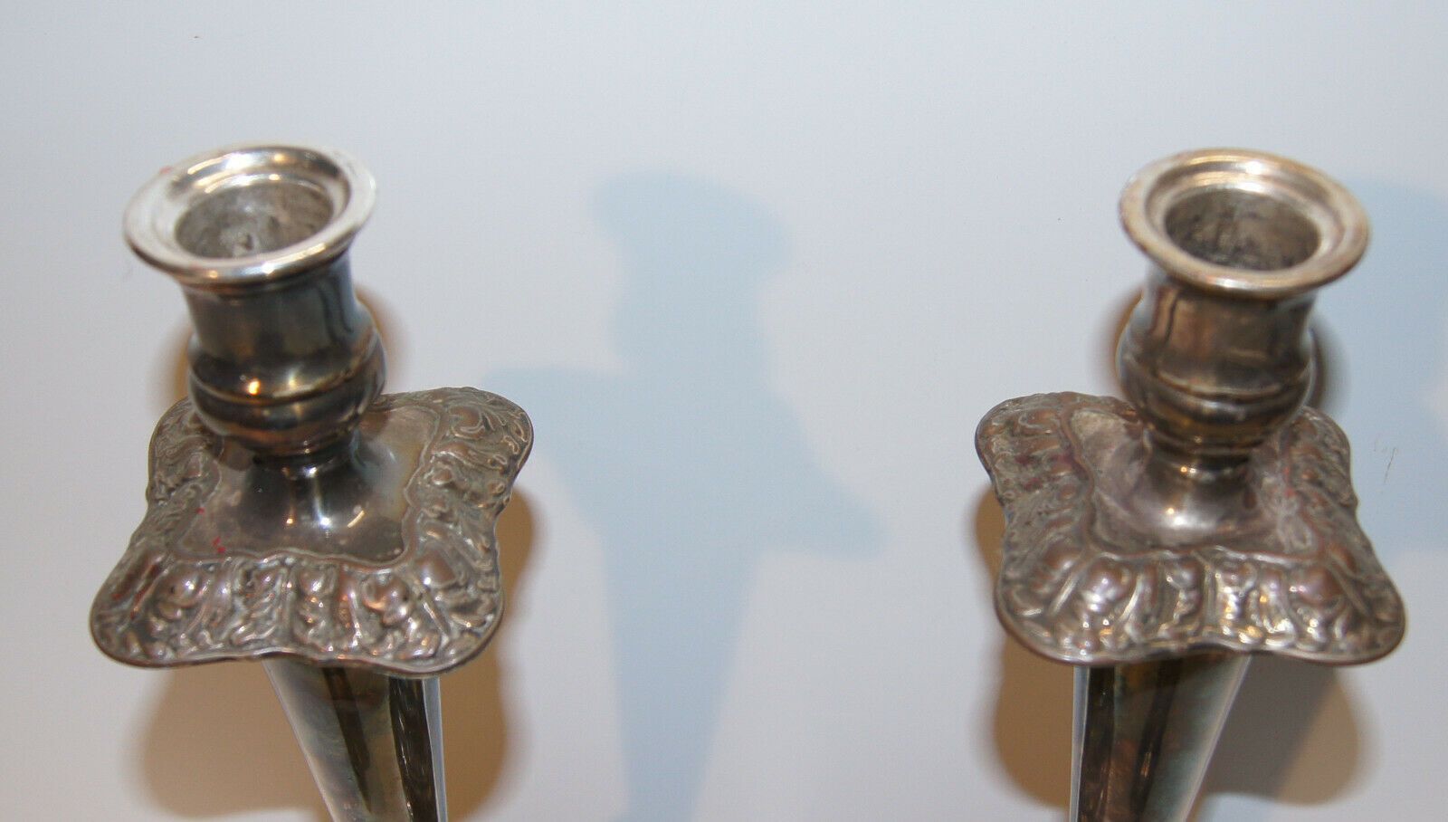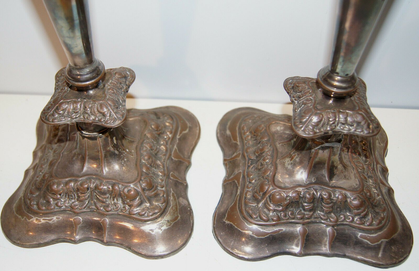 2 große Kupferleuchter versilbert um 1870 /5376