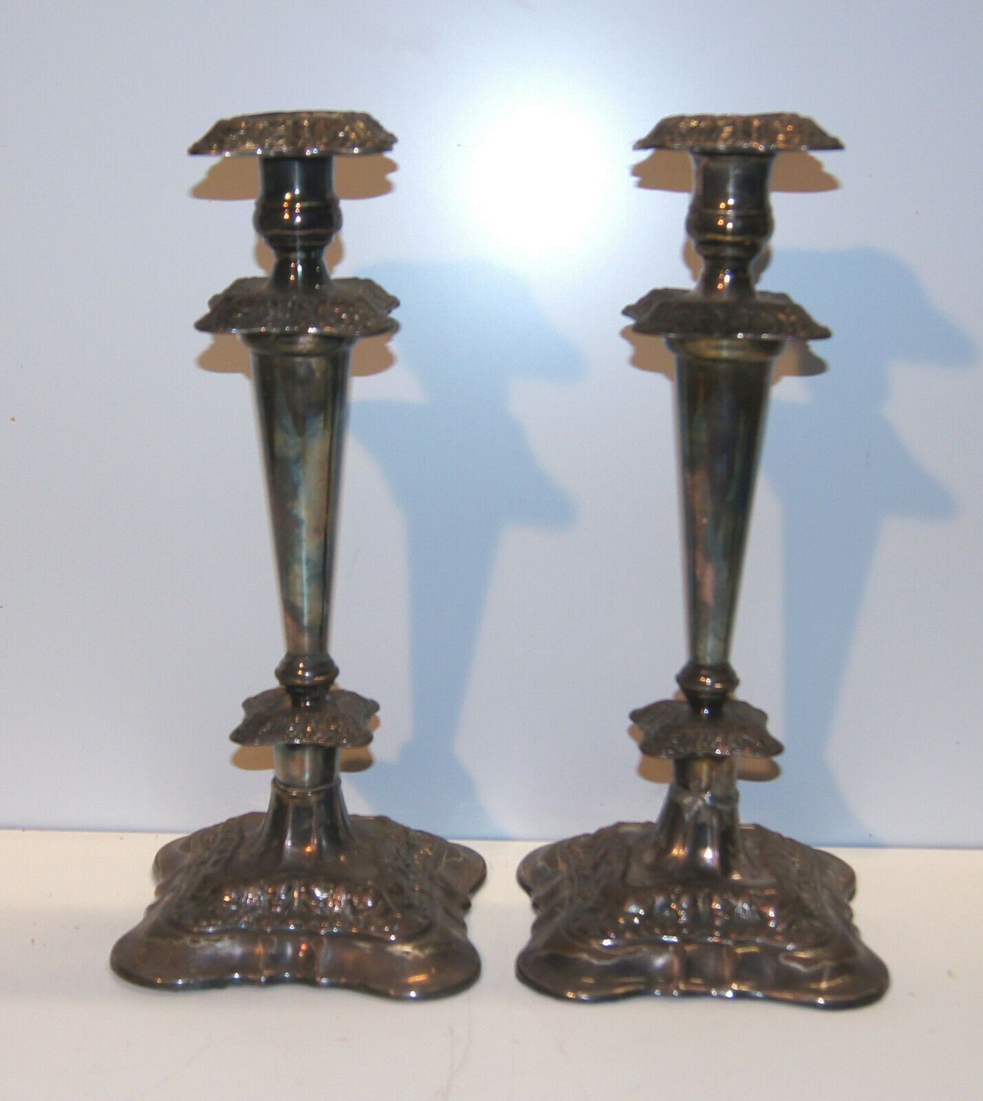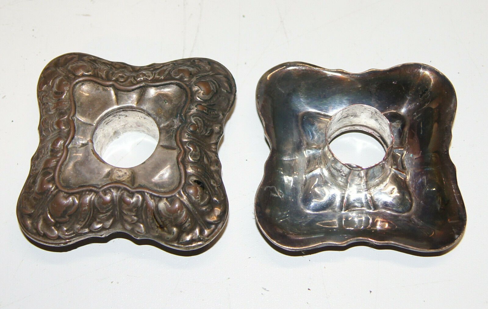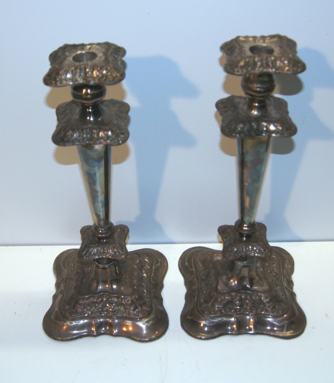 2 große Kupferleuchter versilbert um 1870 /5376