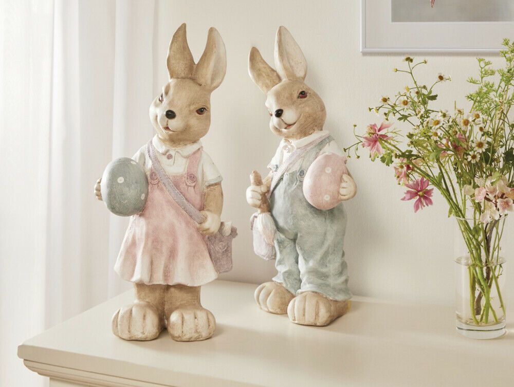 2 Hasen im Set XL Figuren Pastell Oster Deko Haus Garten Terrasse Polyresin 48 cm