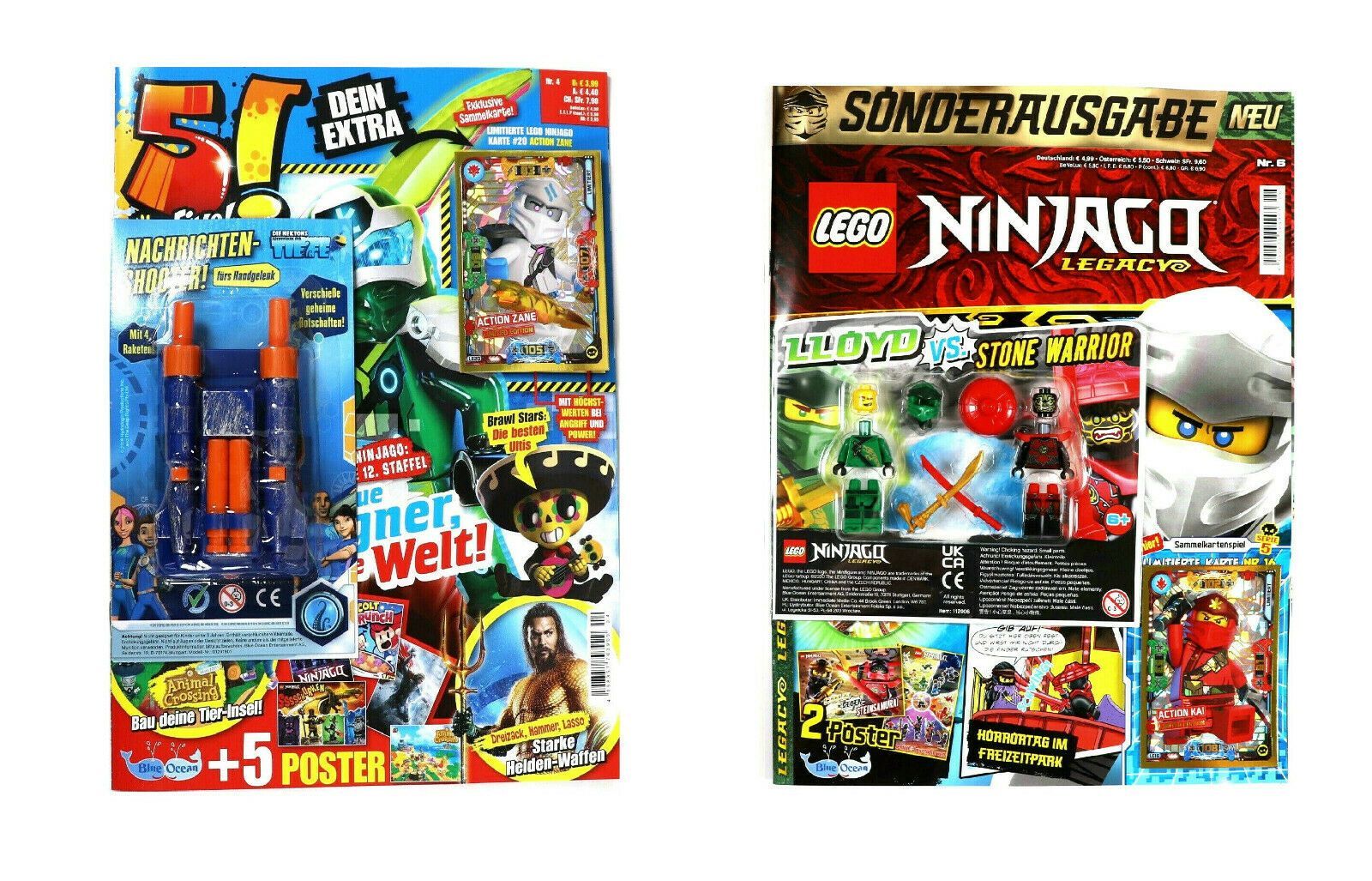 2 Hefte Magazin mit Poster + Ninjago Limitierte Karte + Figur LLOYD VS. Stone War