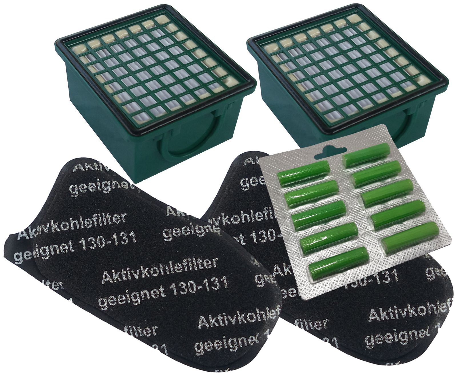 Andys-Saugerbedarf 2 Hepafilter + 2 Geruchsfilter Filter geeignet Vorwerk Kobold VK 130 131 + Duft Artikelbeschreibung Sie erwerben 2Hepafilter Hygienefilter. + 2 Aktivkohlefilter Geruchsfilter. + 10 Duftstäbchen Sommerwiese. Geeignet für den Vorwerk Kobold VK 130 und 131. Regelmäßiges wechseln der