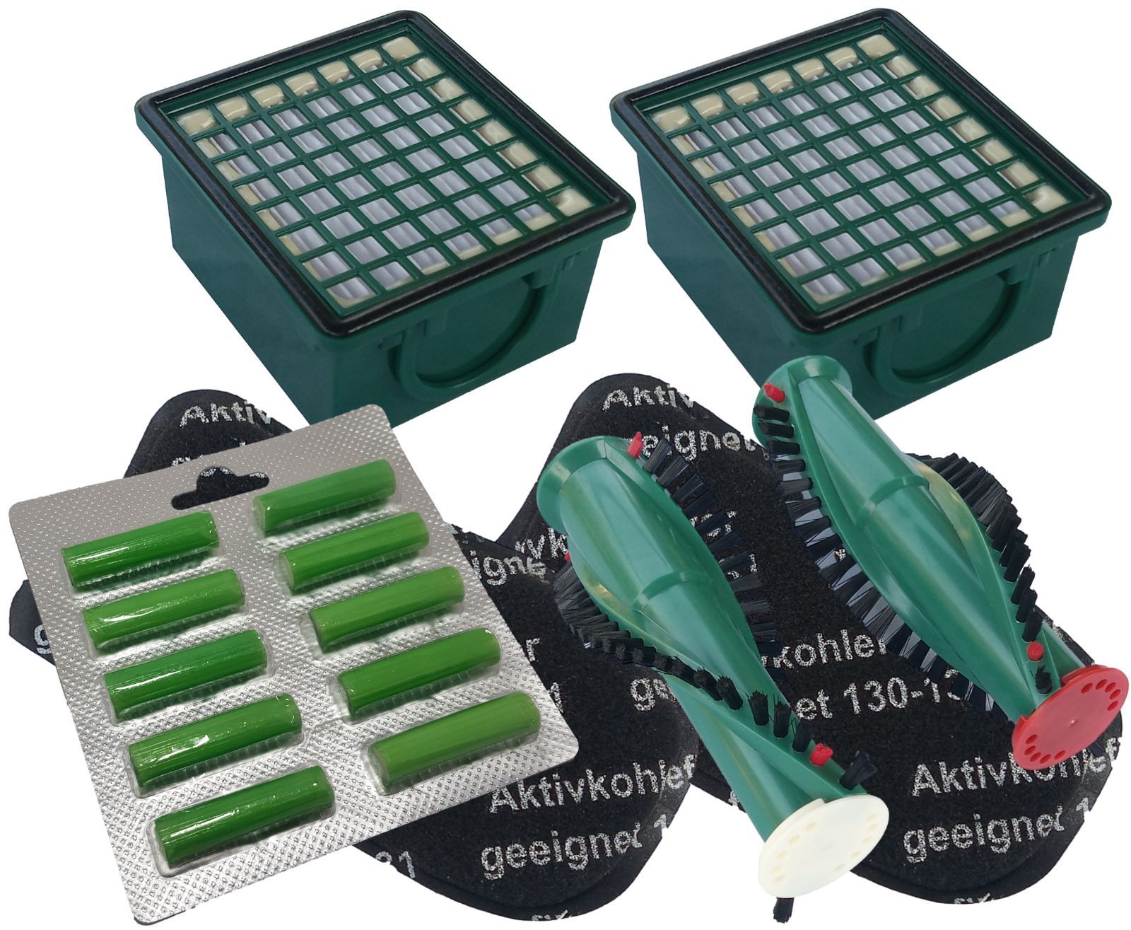 Andys-Saugerbedarf 2 Hepafilter + 2 Geruchsfilter Filter geeignet Vorwerk Kobold VK 130 131 Set Artikelbeschreibung Sie erwerben 2 Hepafilter und 2 Aktivkohlefilte r. + 1 Paar Ersatzbürsten für die Elektroteppichbürste EB 350 und EB 351. + 10 Duftstäbchen Sommerwiese. Geeignet für den Vorwerk Kobold