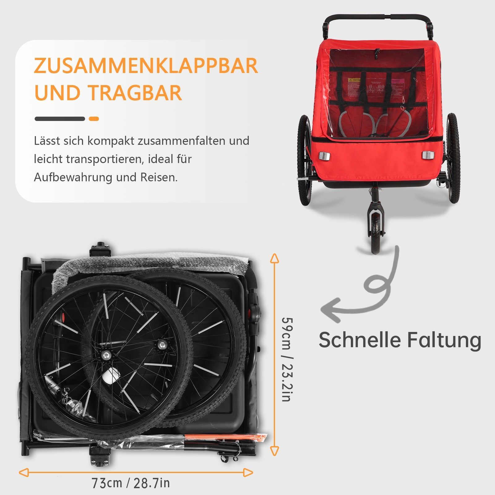 2-in-1 Fahrradanhänger und Jogging-Kinderwagen - Sicher, komfortabel & platzsparend