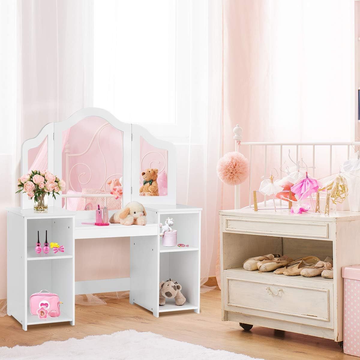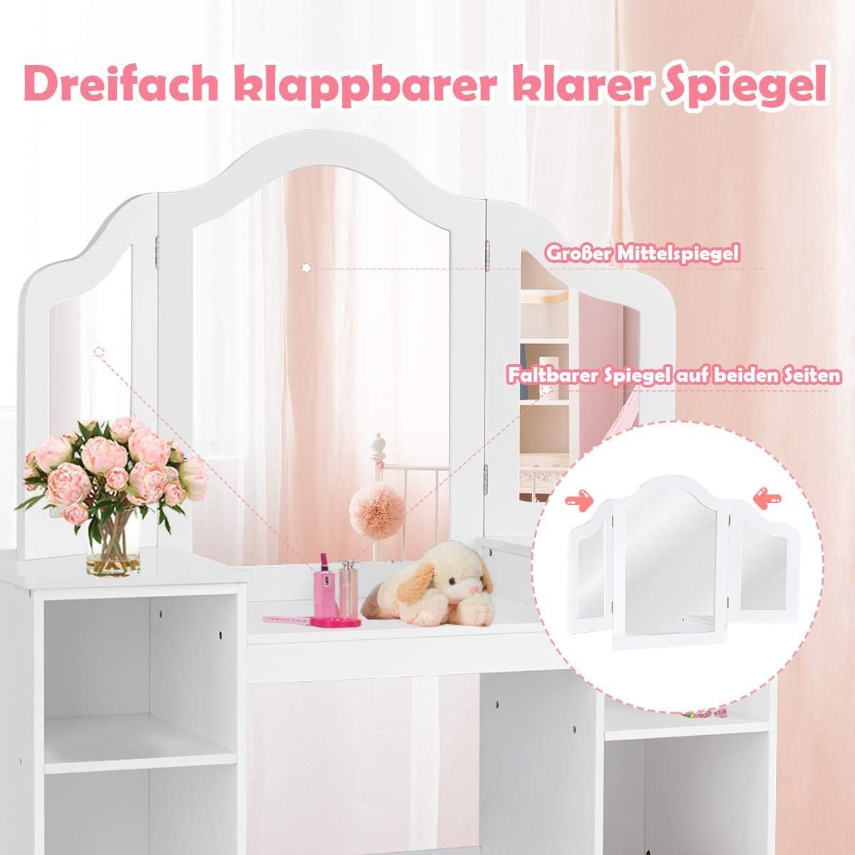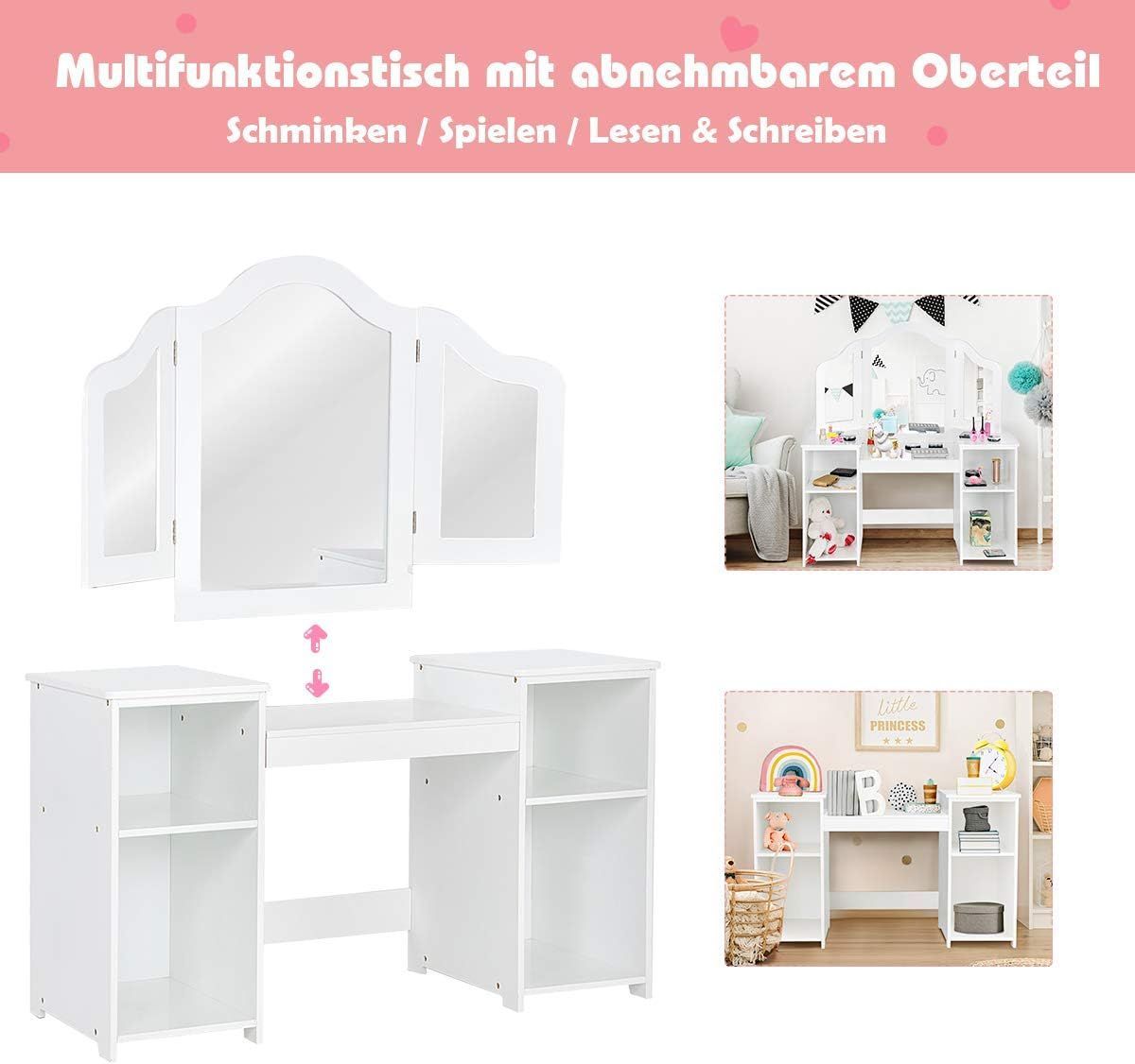 2 in 1 Kinder Schminktisch Schreibtisch mit abnehmbarem Spiegel, Schminkkommode