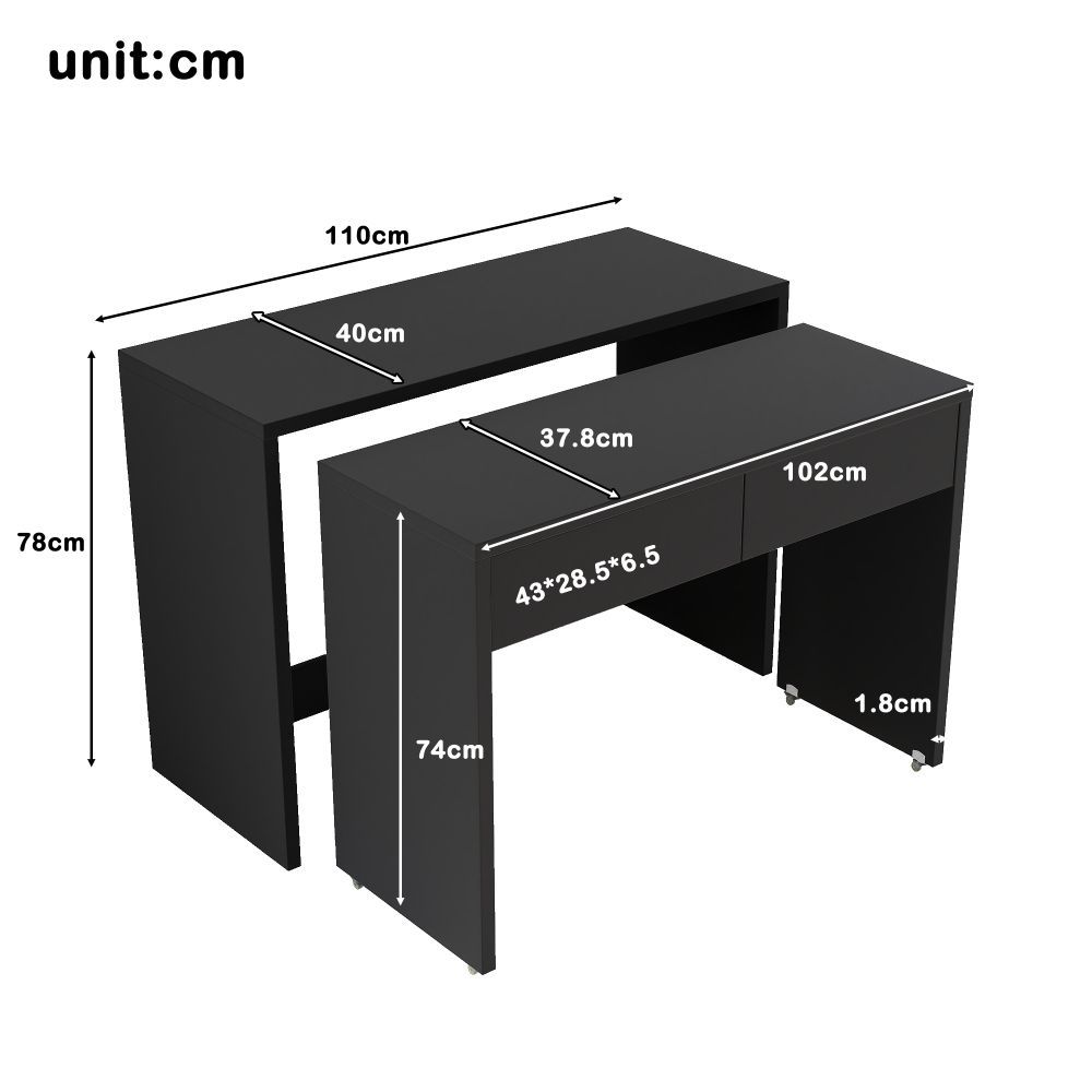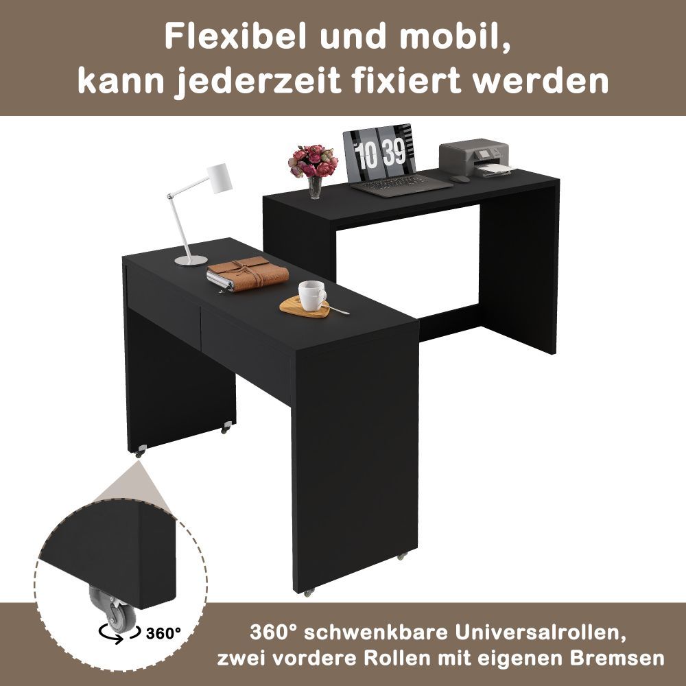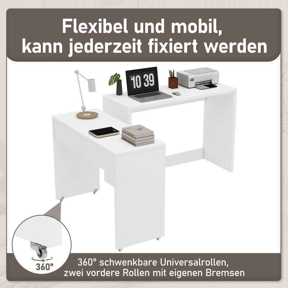 2-in-1 Regalschreibtisch mit Kommode, ausziehbar, faltbar, mobil