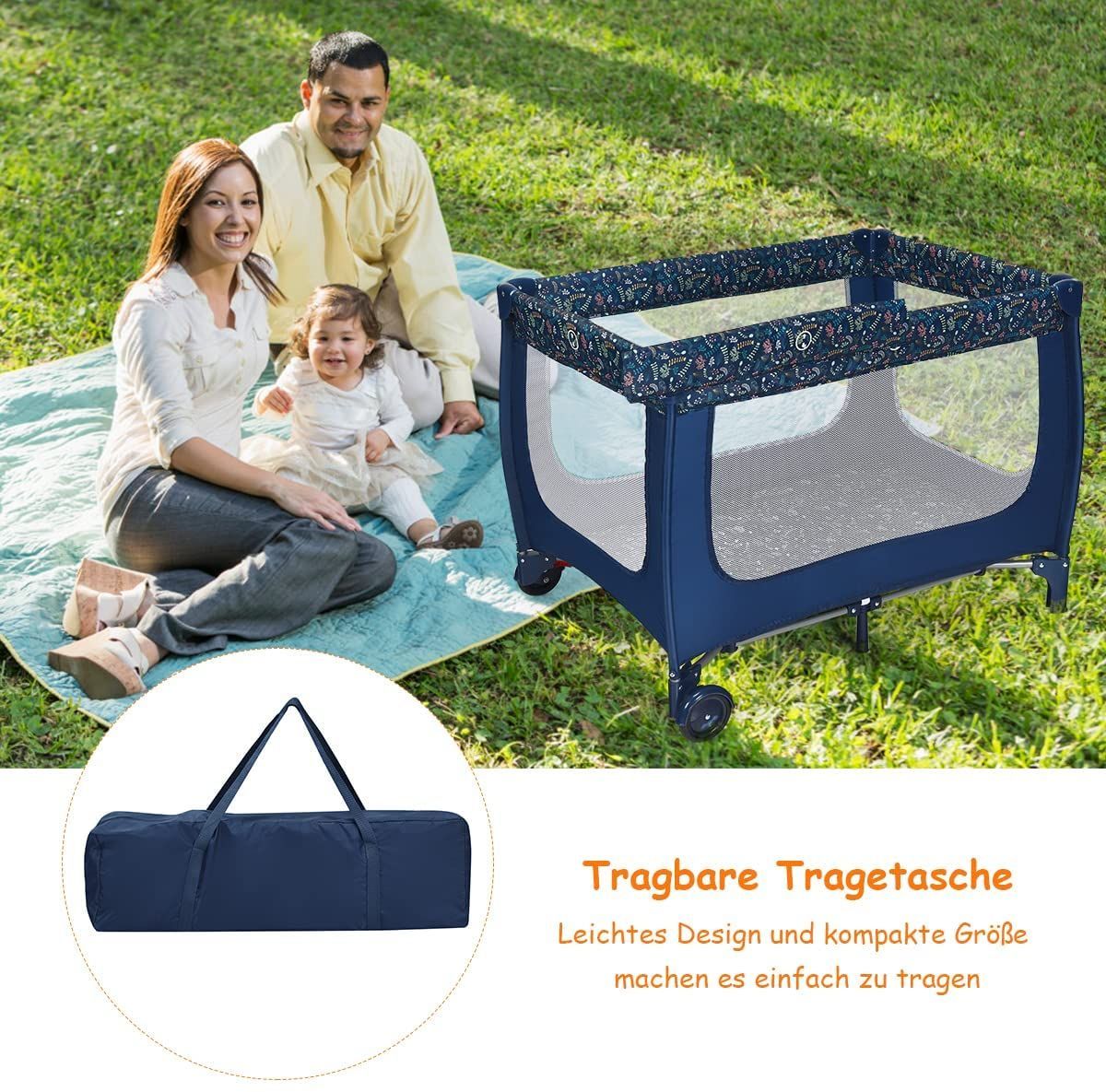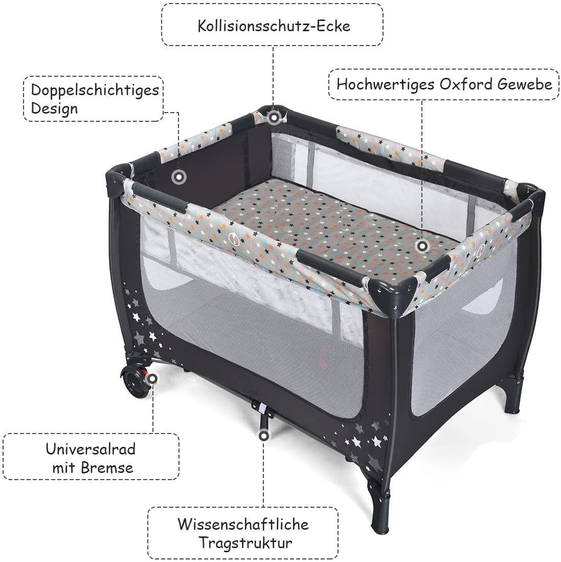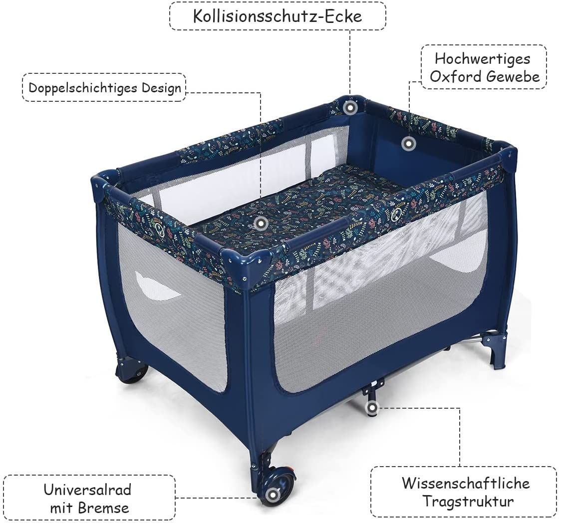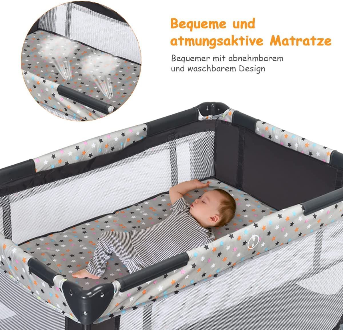 2 in 1 Reisebett Laufstall klappbar, Kinderbett, 2 Ebenen Babybett Matratze