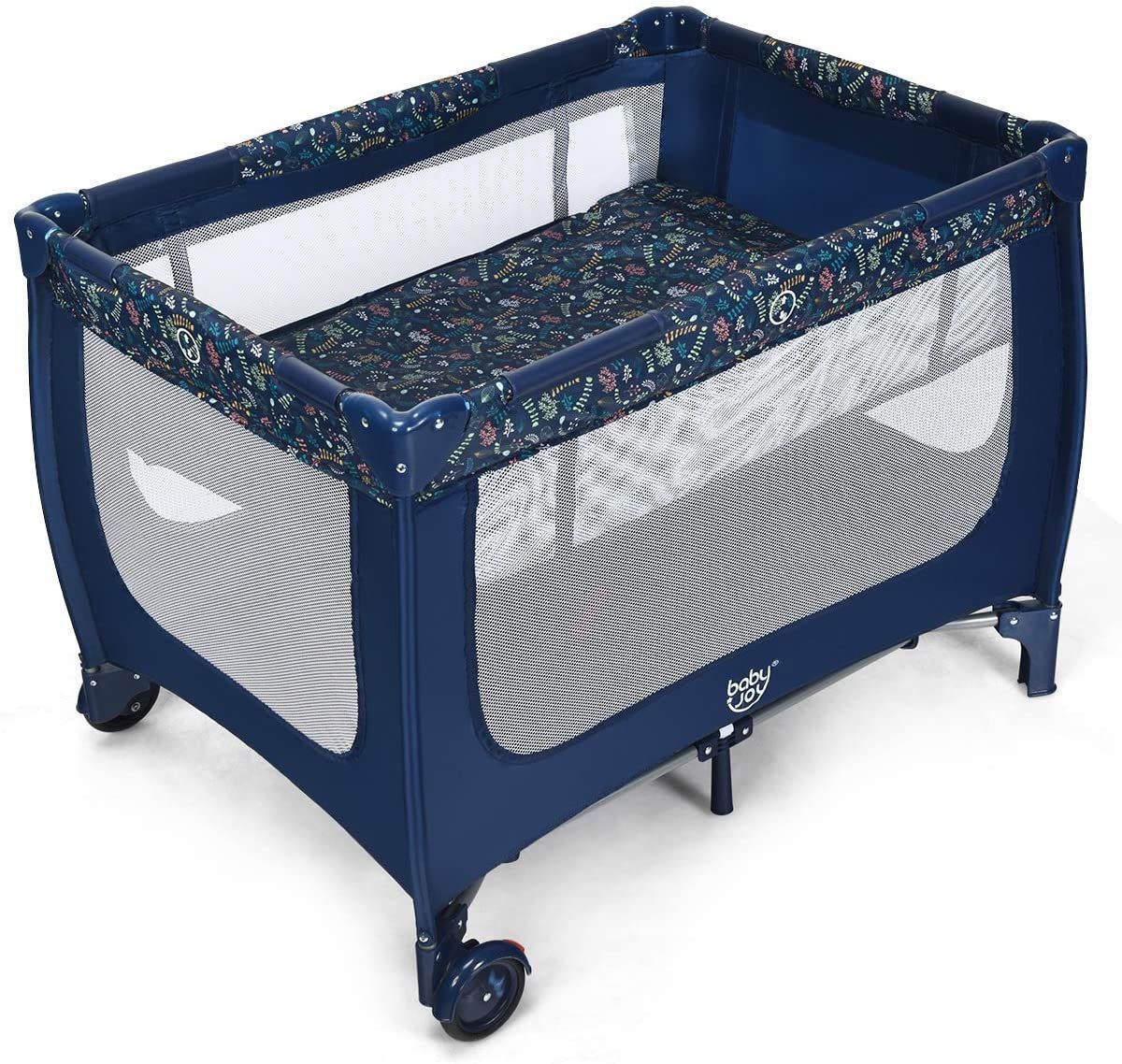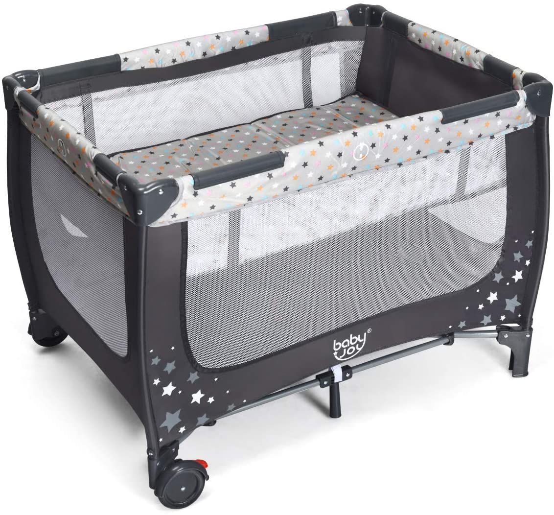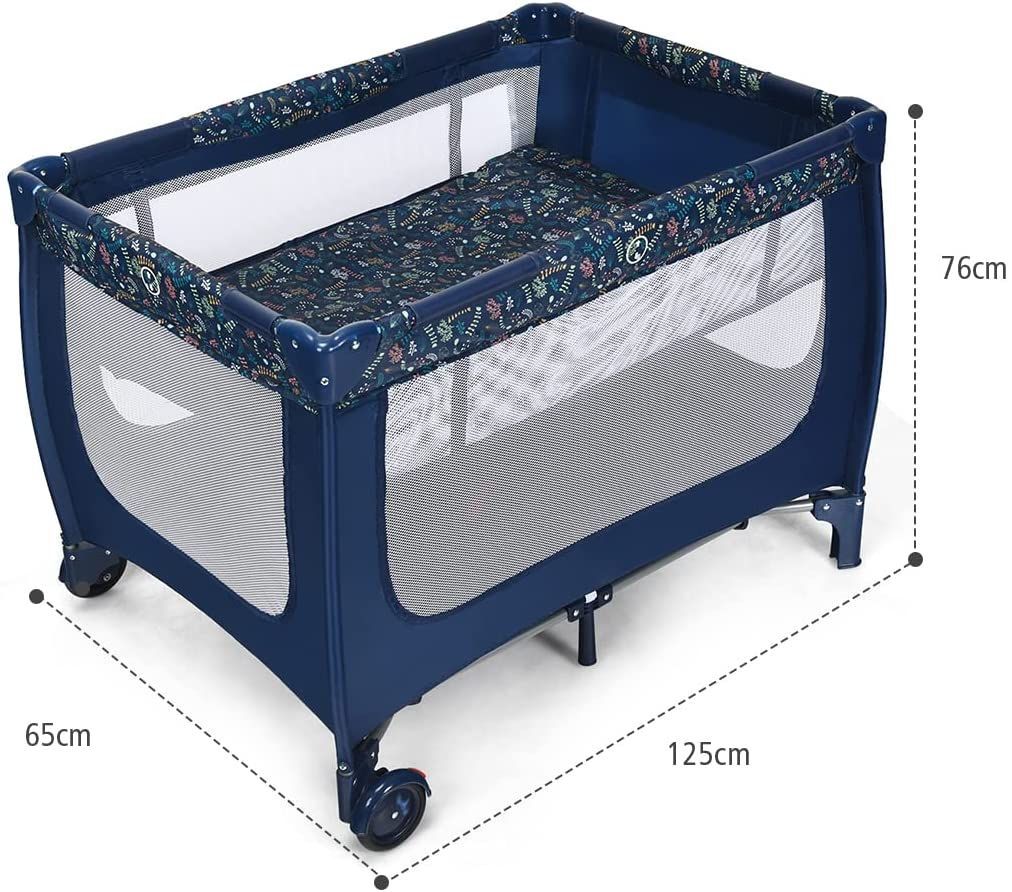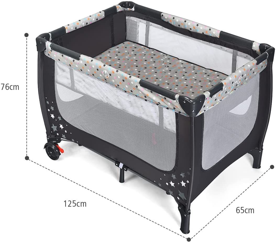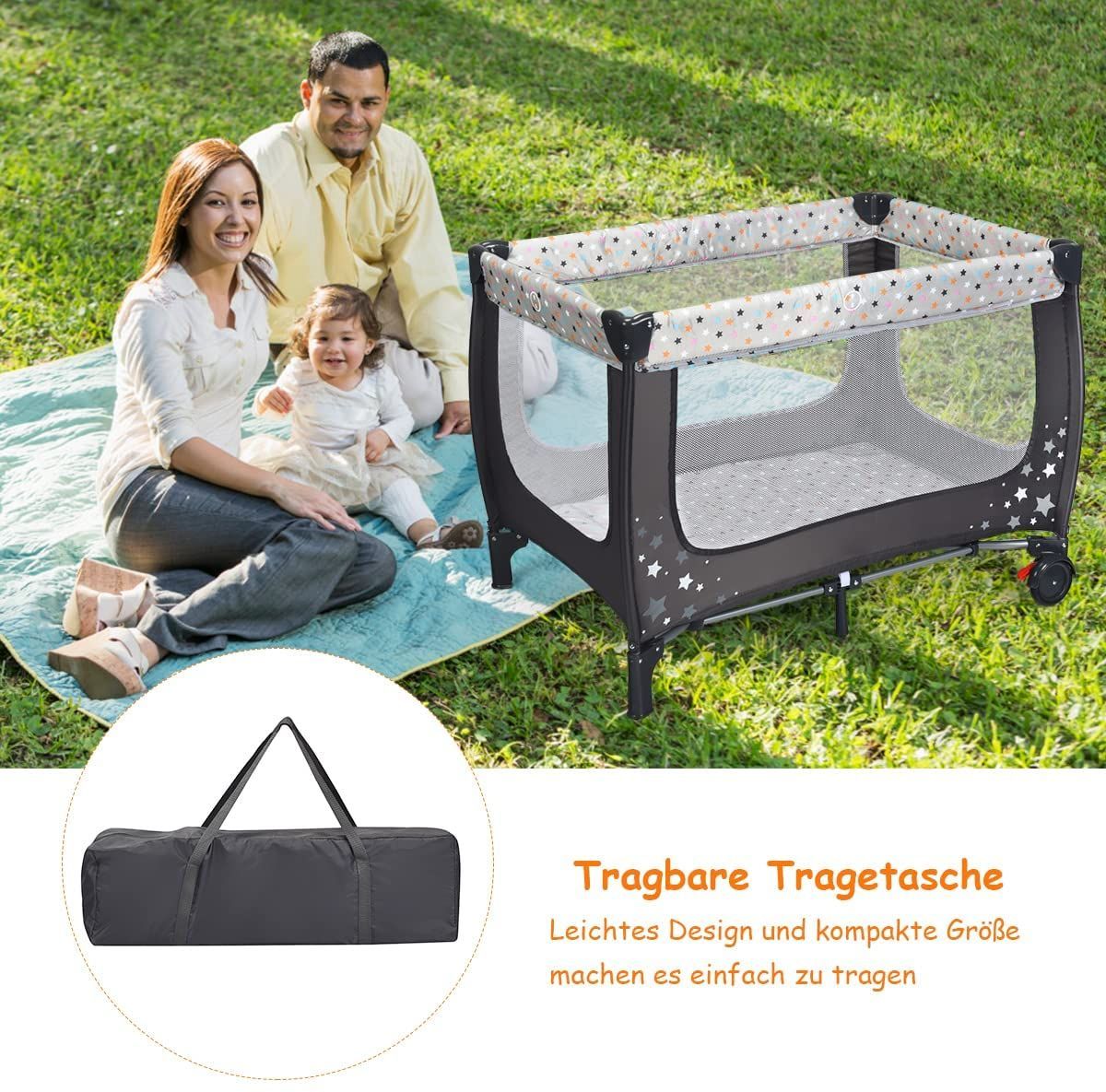 2 in 1 Reisebett Laufstall klappbar, Kinderbett, 2 Ebenen Babybett Matratze