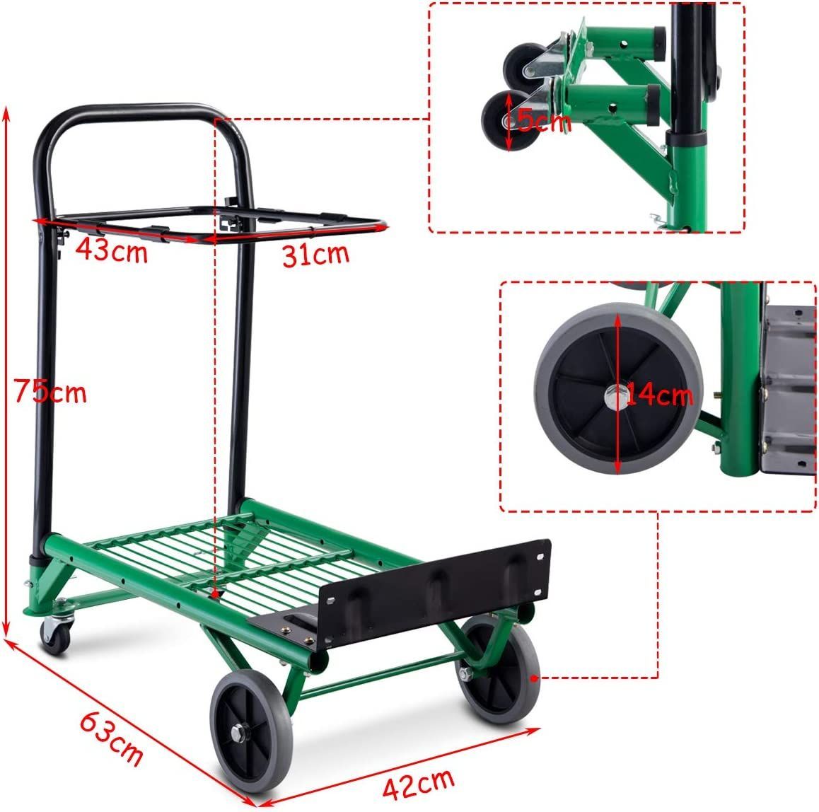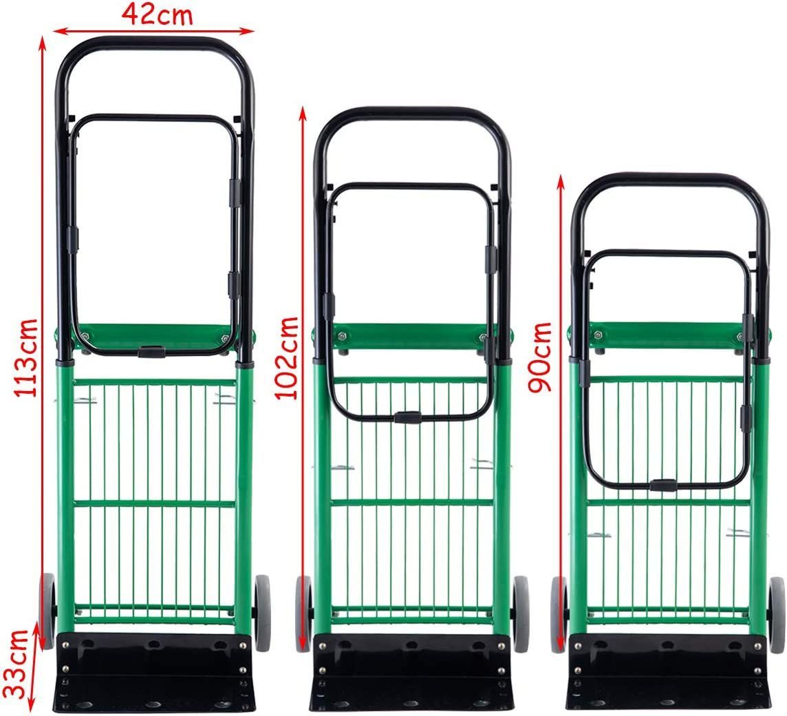 2 in 1 Sackkarre Klappbar Transportwagen, belastbar bis 90 kg, Höhe: 90/102/113 cm