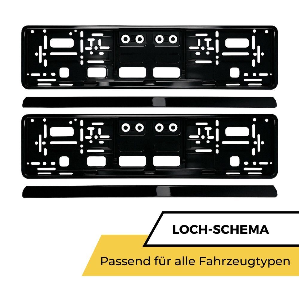 2 Kennzeichenhalter | Schwarz Hochglanz | Auto Nummernschildhalter | Universal