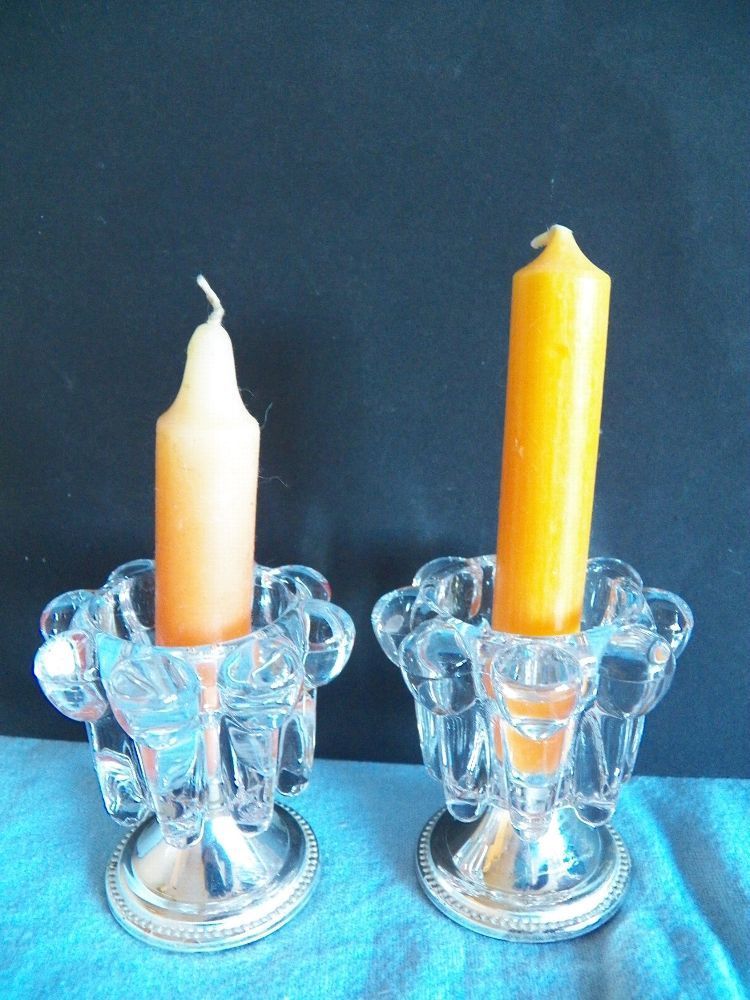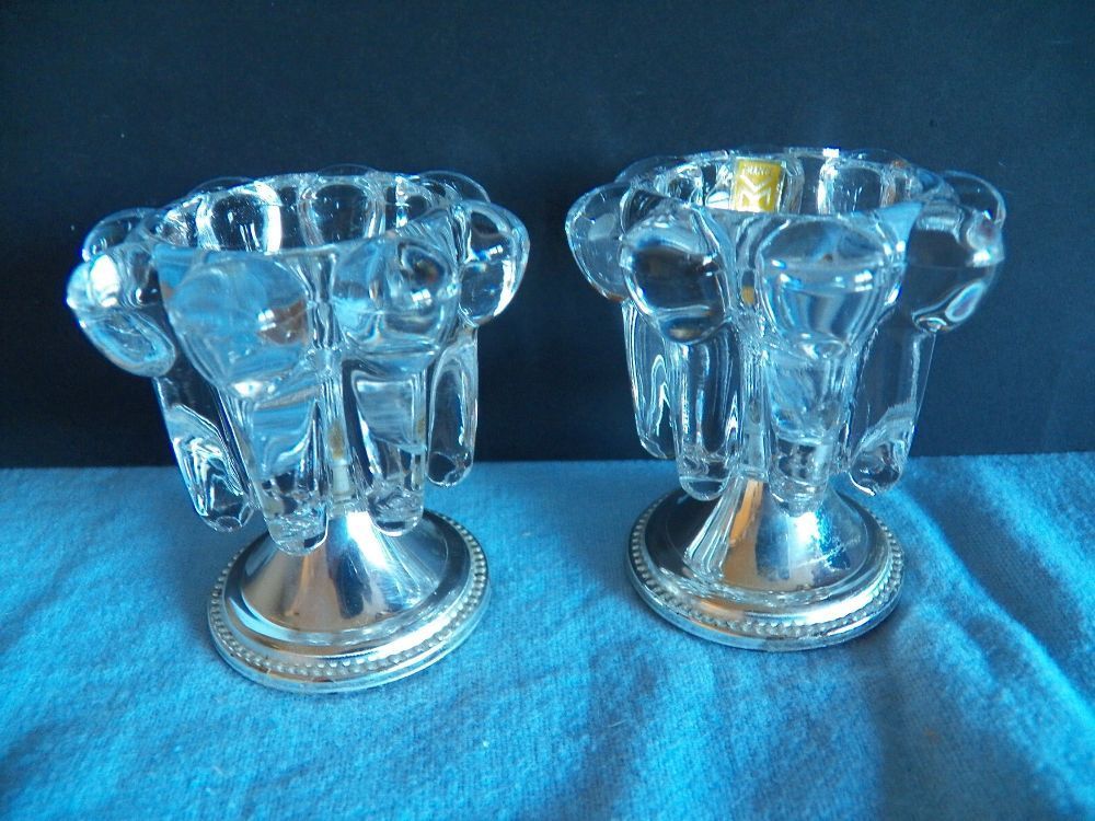 2 Kerzenhalter Kerzenständer mit silberfarbenem Fuß für Tafelkerzen/ VMC Reims
