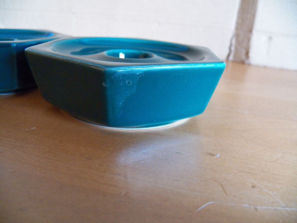 Teil könnte verstaubt oder verschmutzt sein, an einem ist an den Kanten die Farbe abgerieben Maße: ca. 3 cm hoch und hat einen Durchmesser von ca. 10 cm Standfläche für Kerze hat einen Durchmesser von ca. 1,5 cm