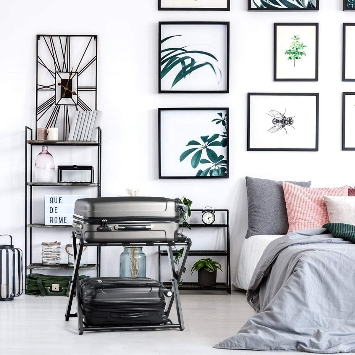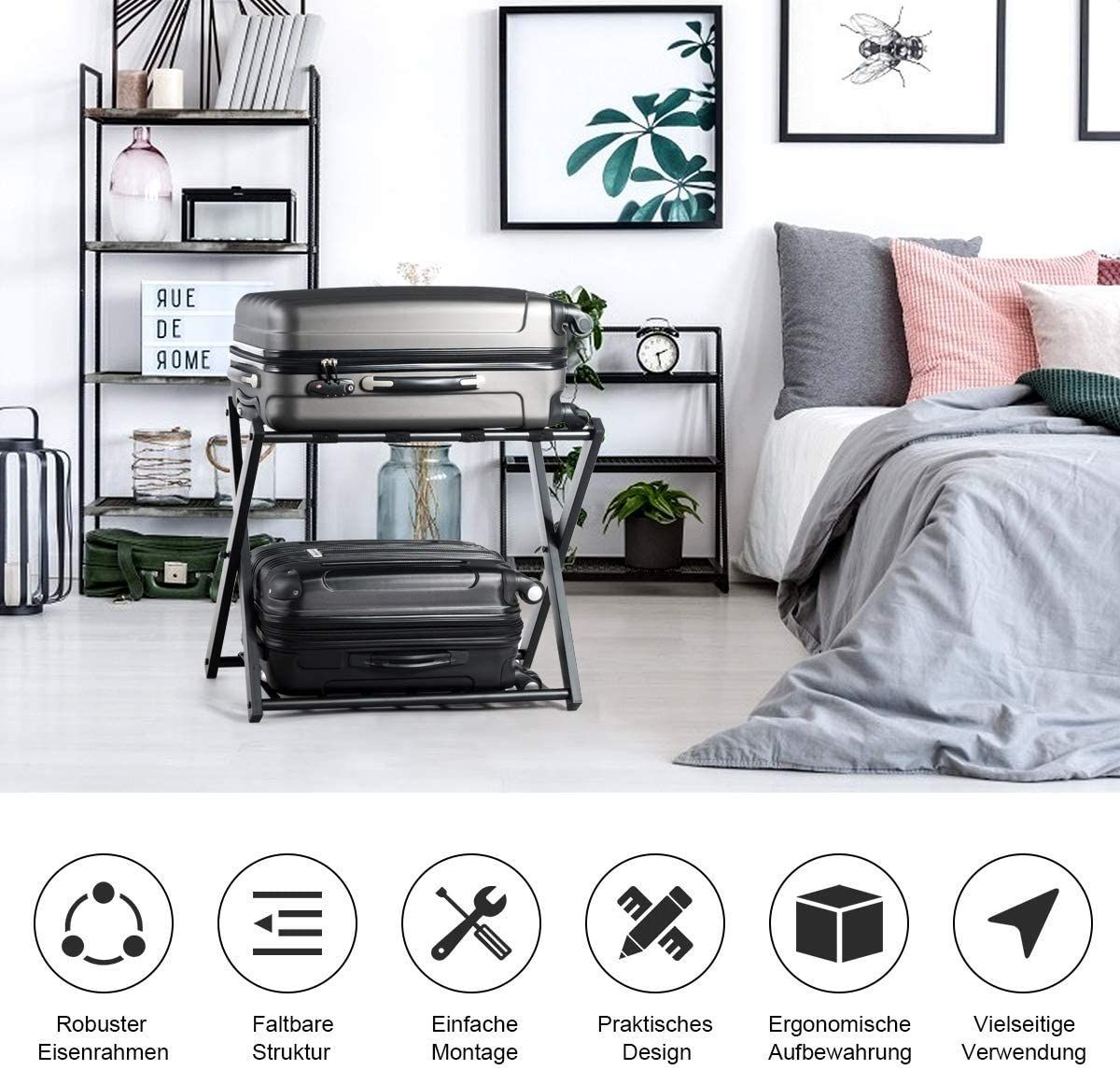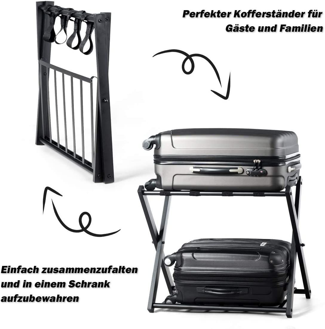2 Kofferständer klappbar, Gepäckständer schwarz, Gepäckablage Metall für Schlafzimmer