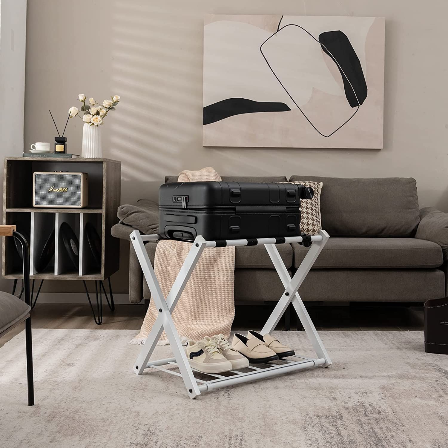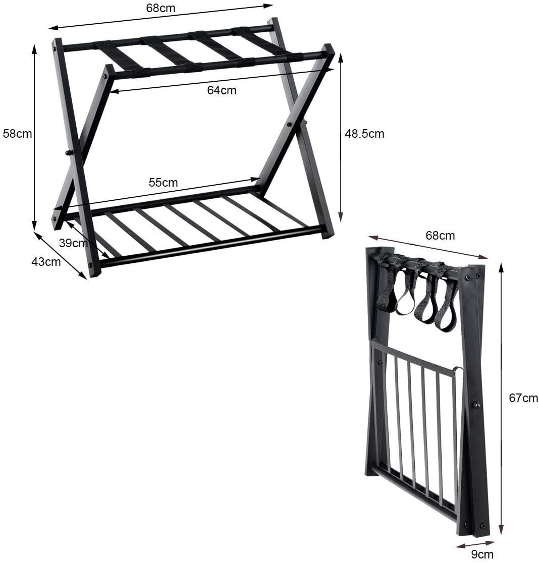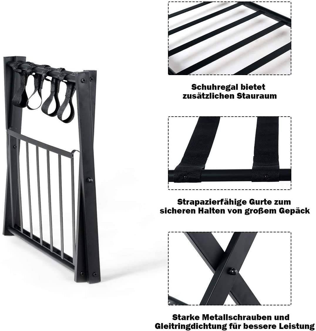 2 Kofferständer klappbar, Gepäckständer schwarz, Gepäckablage Metall für Schlafzimmer