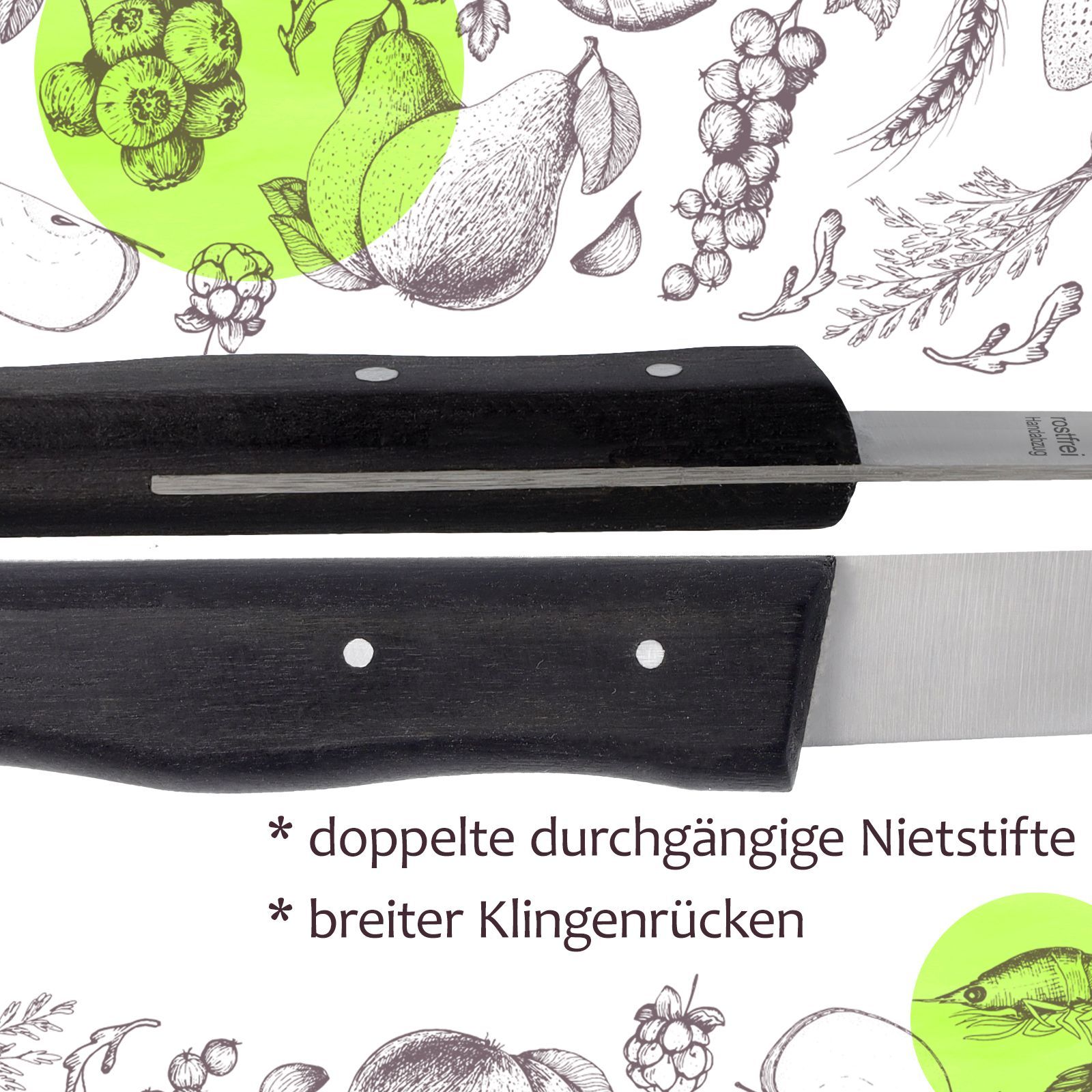2 Küchenmesser gerade rostfrei klein Holzgriff Buche schwarz scharf Obst Gemüse