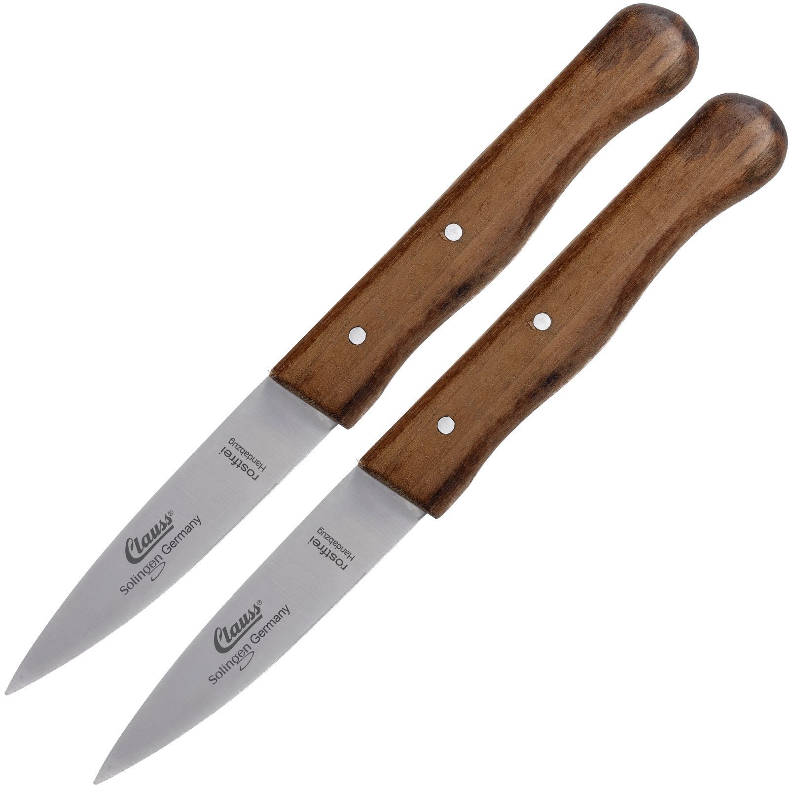 2 Küchenmesser mittelspitz rostfrei klein Holzgriff Schwarznuss scharf Obst Gemüsev