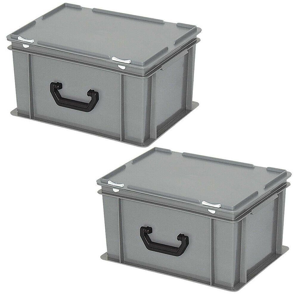 2 Kunststoffkoffer, LxBxH 400x300x230 mm, 21 Liter, grau, PE-HD