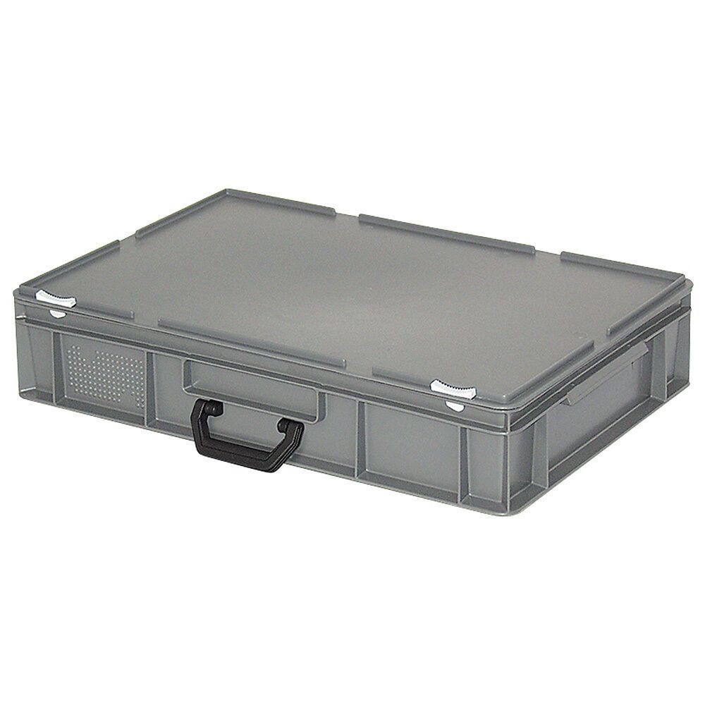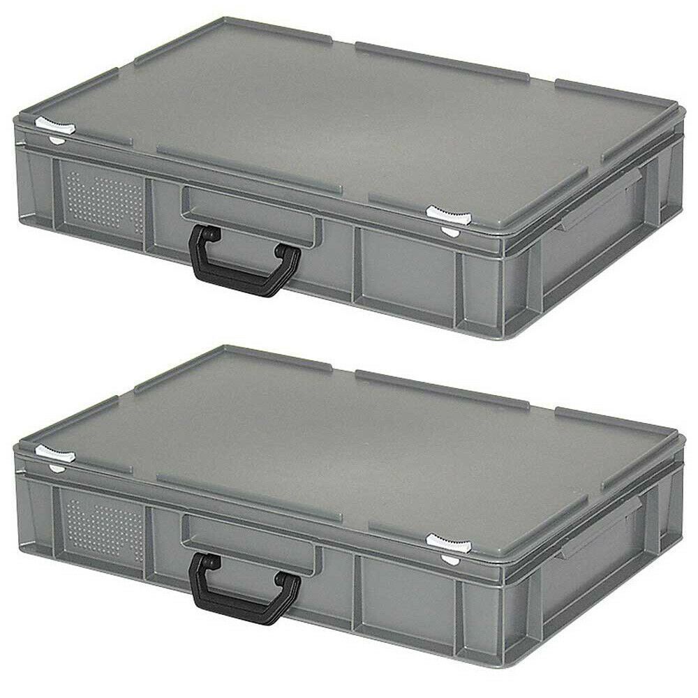 2 Kunststoffkoffer mit Scharnierdeckel, grau, LxBxH 600 x 400 x 130 mm, PE-HD