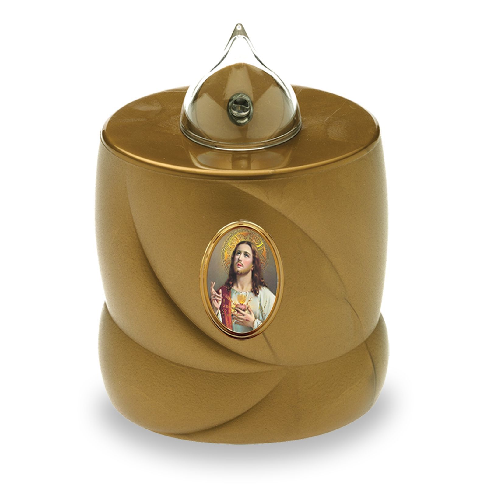 2 LED Grabkerzen Flackereffekt lange Brenndauer Trauerlicht gold Jesus