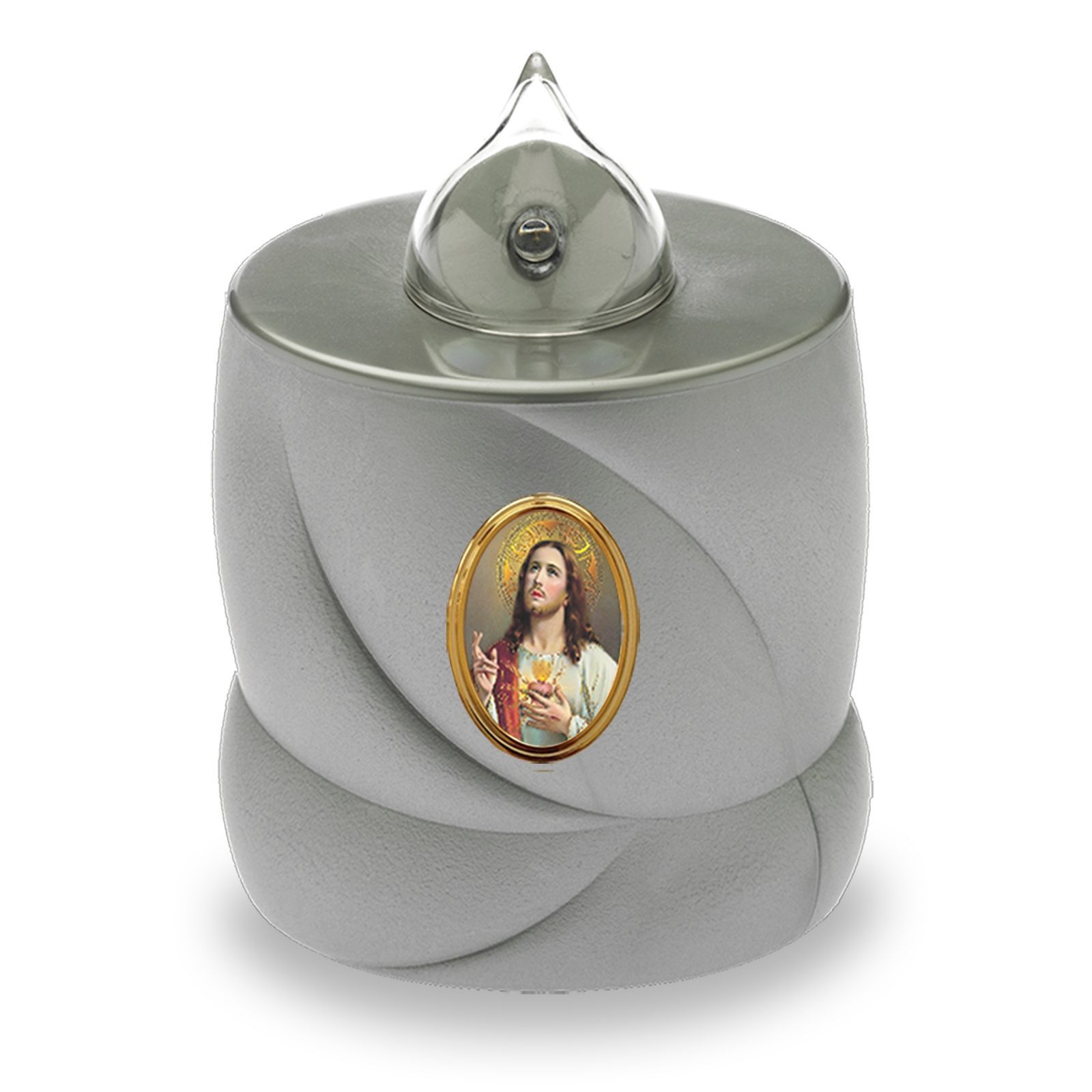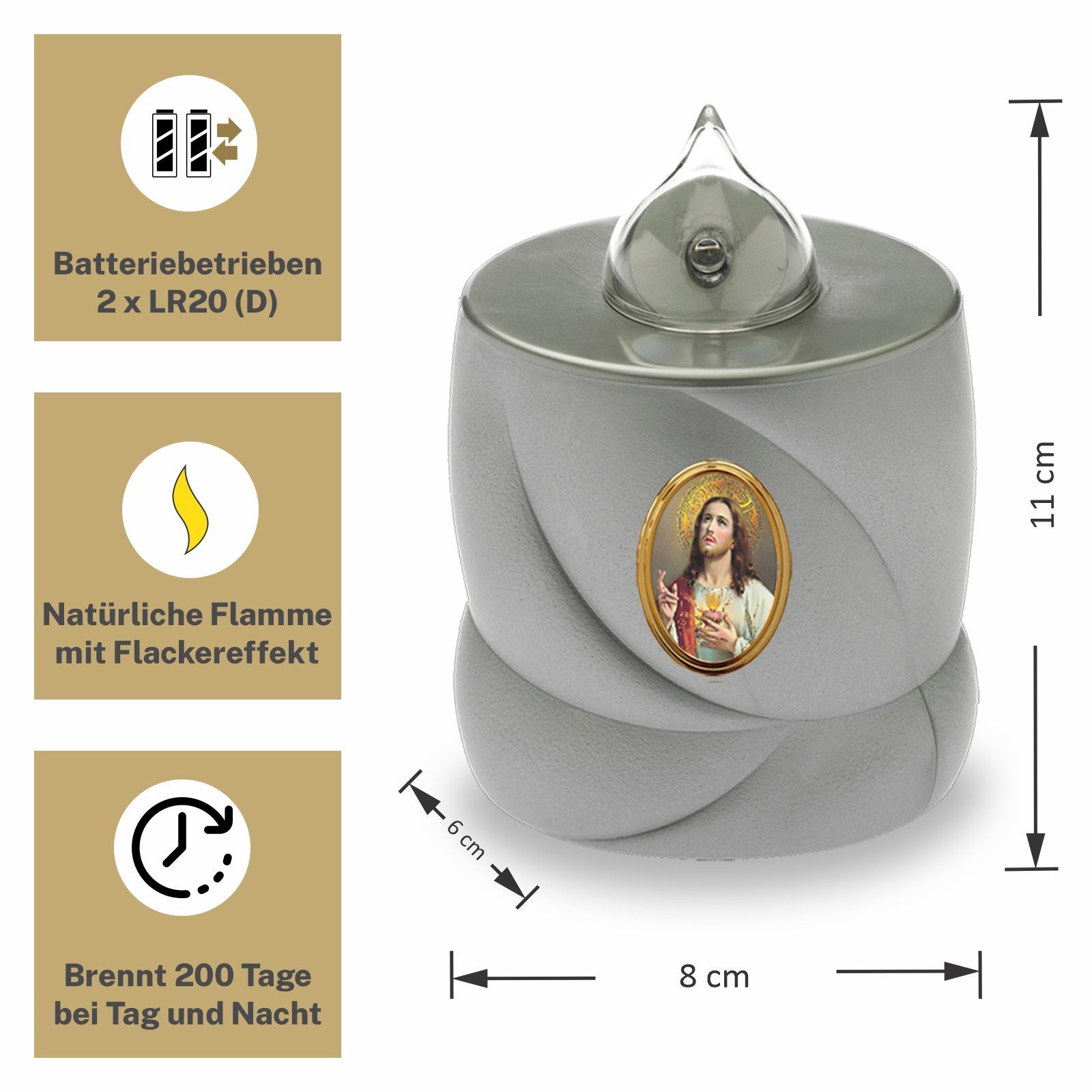 2 LED Grabkerzen Flackereffekt lange Brenndauer Trauerlicht silber Jesus