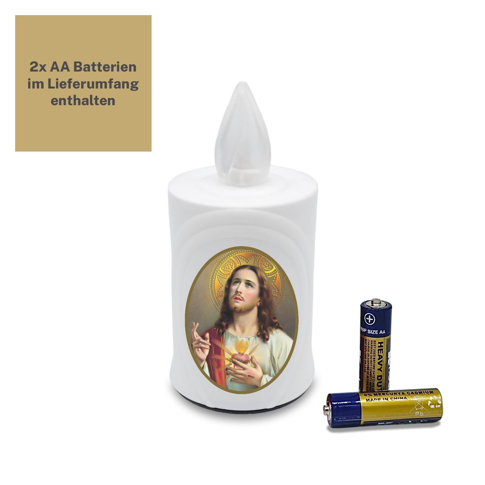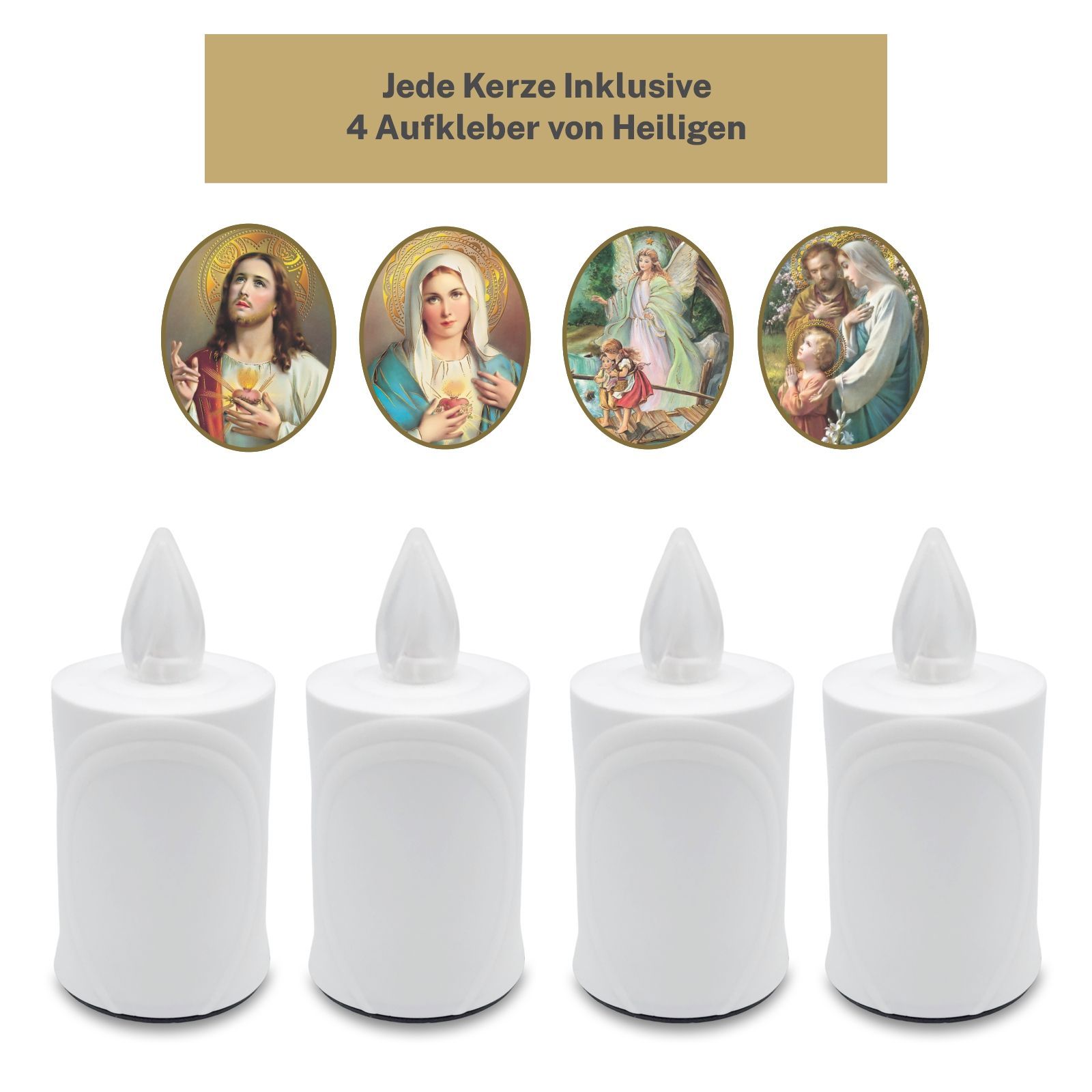 2 LED Grabkerzen Flackereffekt lange Brenndauer weiß inkl. Auswahl an Heiligen