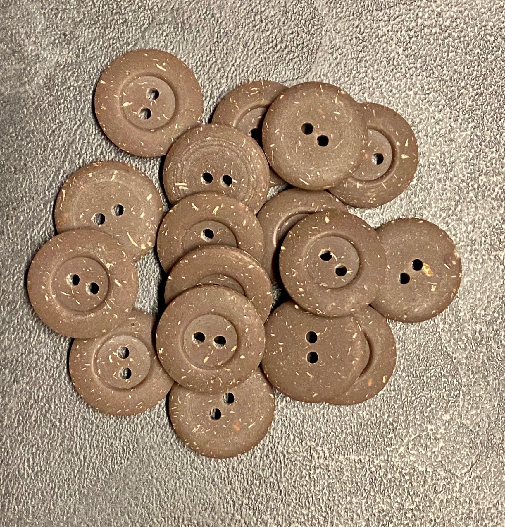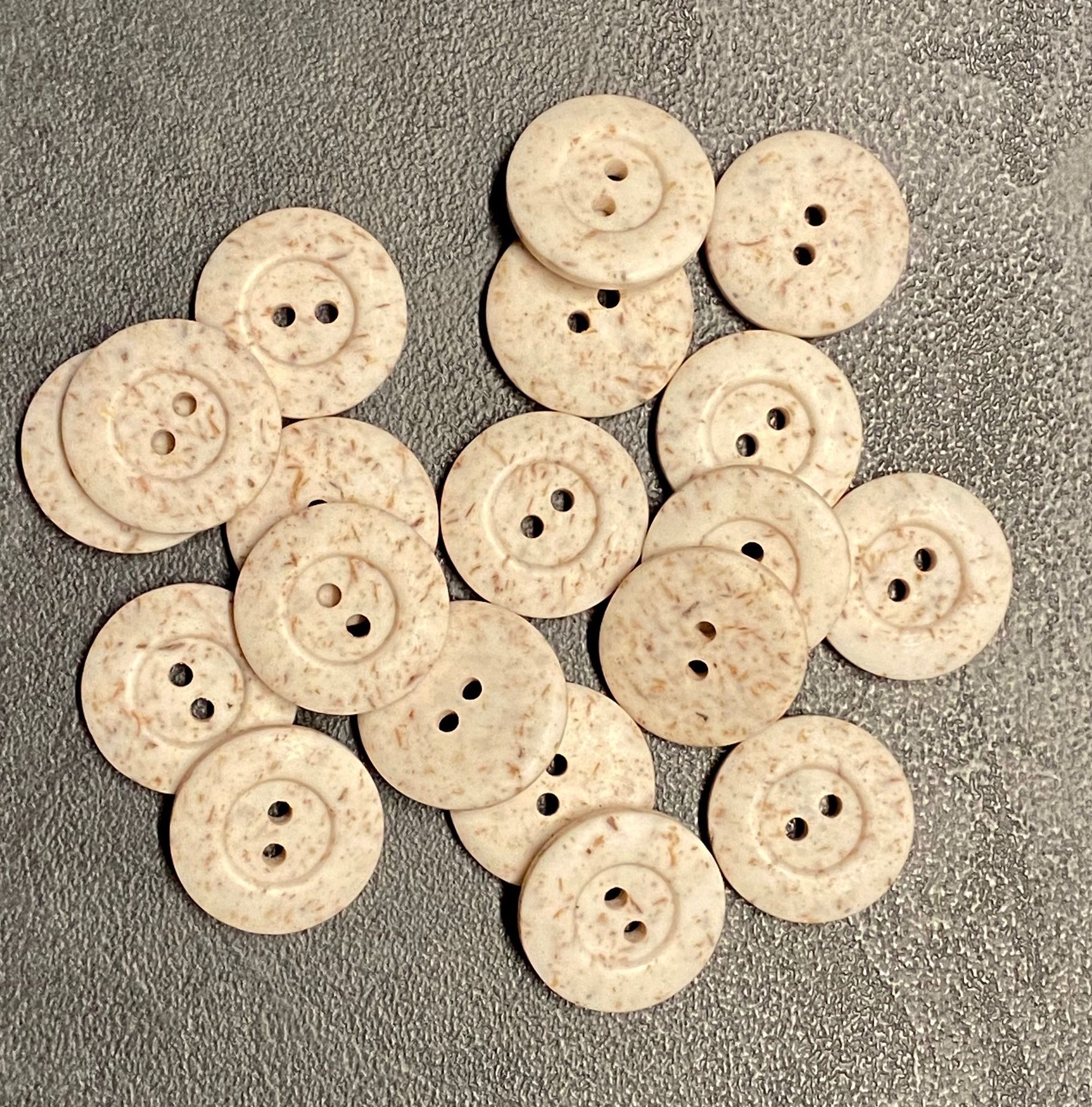 Durchmesser 20 mm - Gesprenkelte 2-Loch Knöpfe in creme, hellbraun und dunkelbraun Duchmesser ca. 20 mm Befestigung 2-Loch Wir verkaufen diesen Knopf in Packungen zu ca. 20 g (ca.18 Stück)