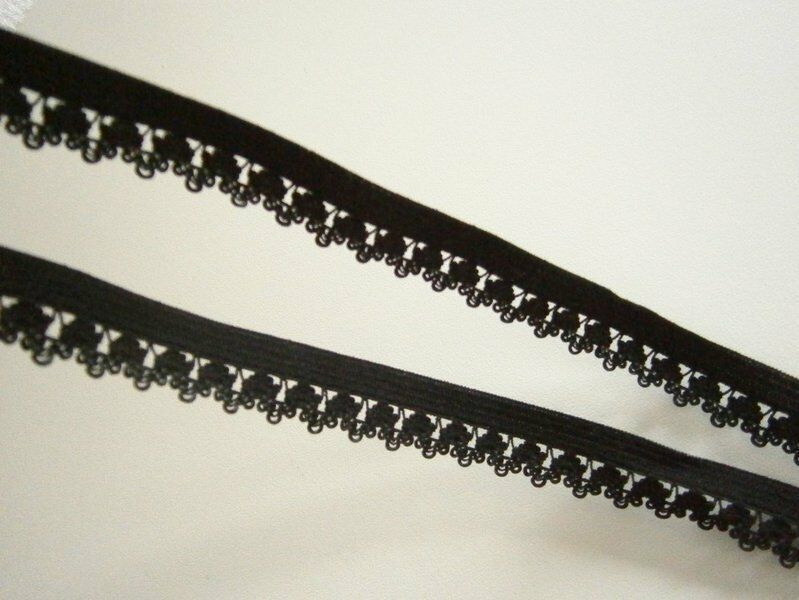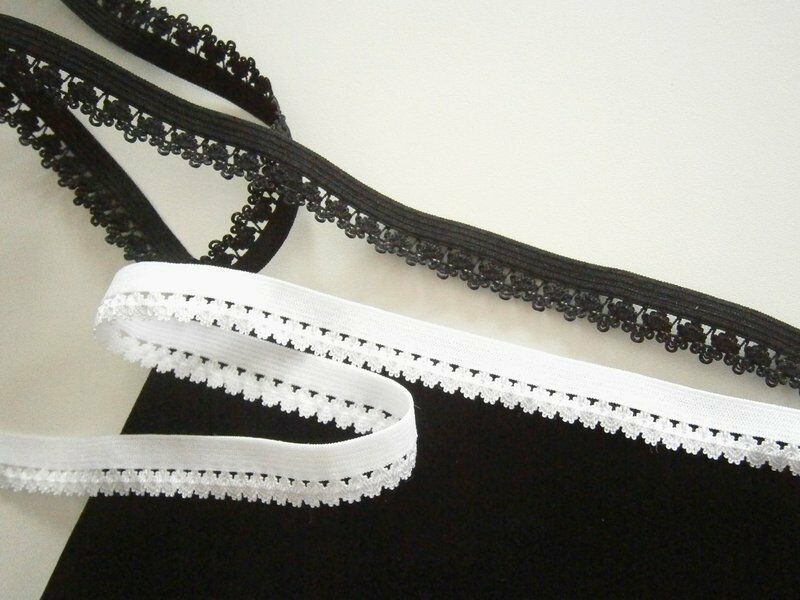 2 m Gummiband, Gummispitze, Wäschegummi, 12 mm, Weiß, Schwarz