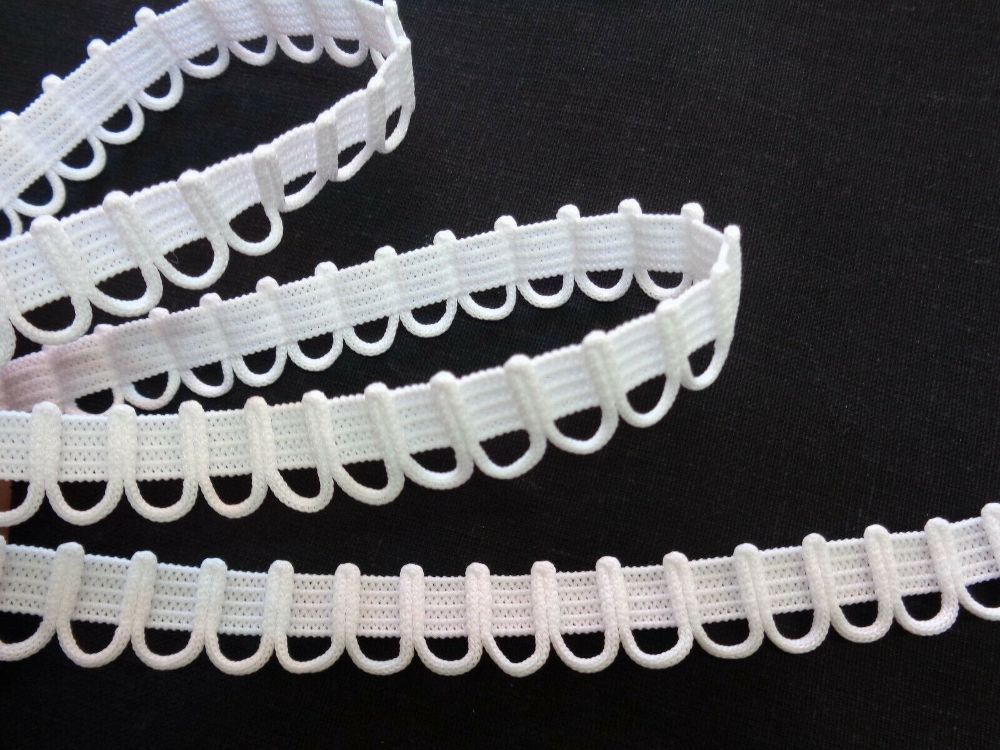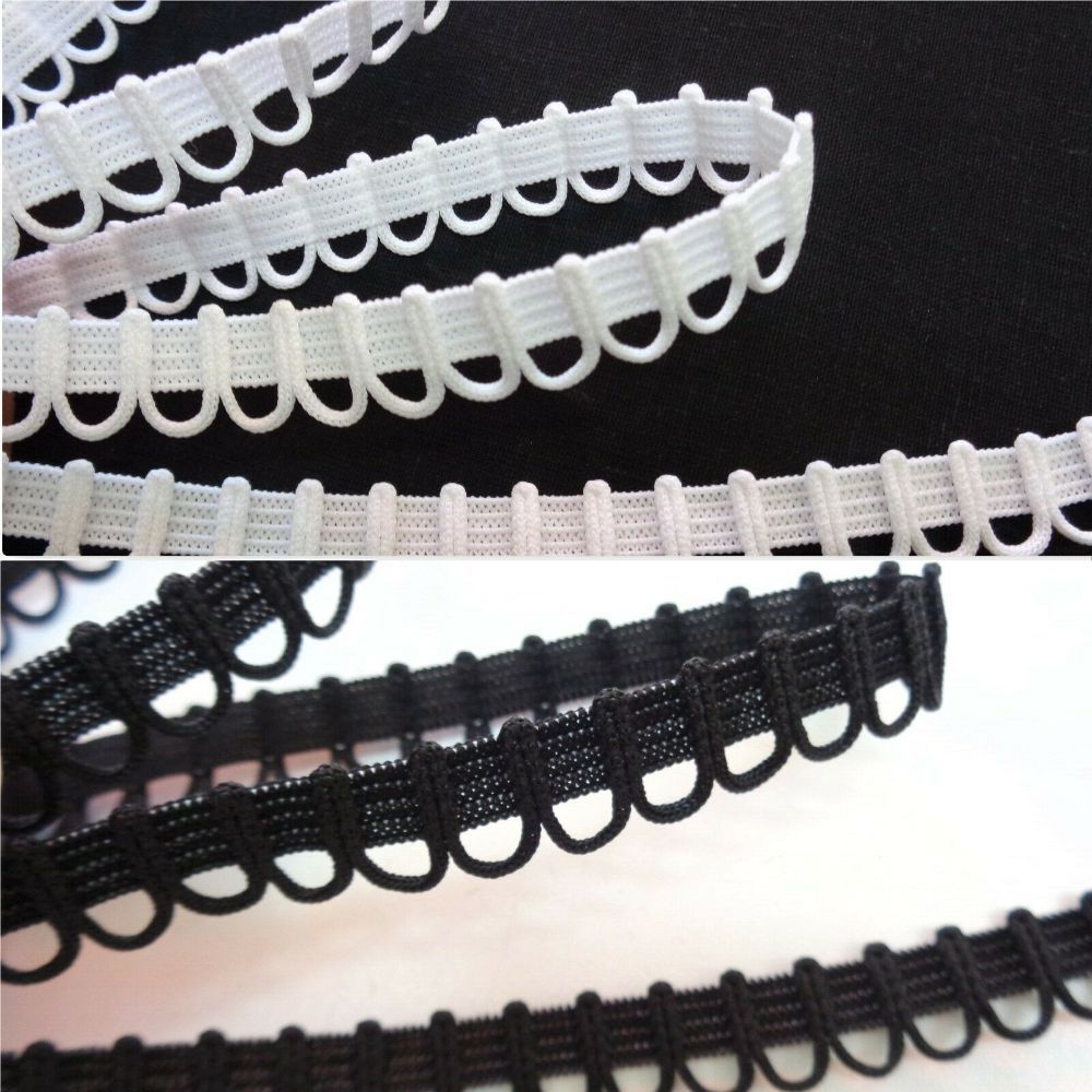 2 m Gummiband mit Schlaufen, Gummispitze, Wäschegummi, 18 mm, Weiß, Schwarz