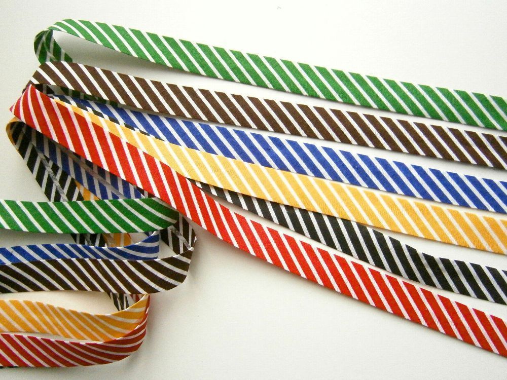 2 m Schrägband, gestreift, Baumwolle, verbügelt, gefalzt,14 mm