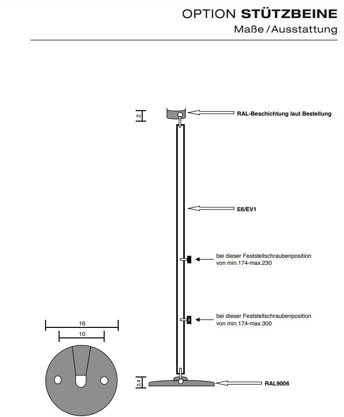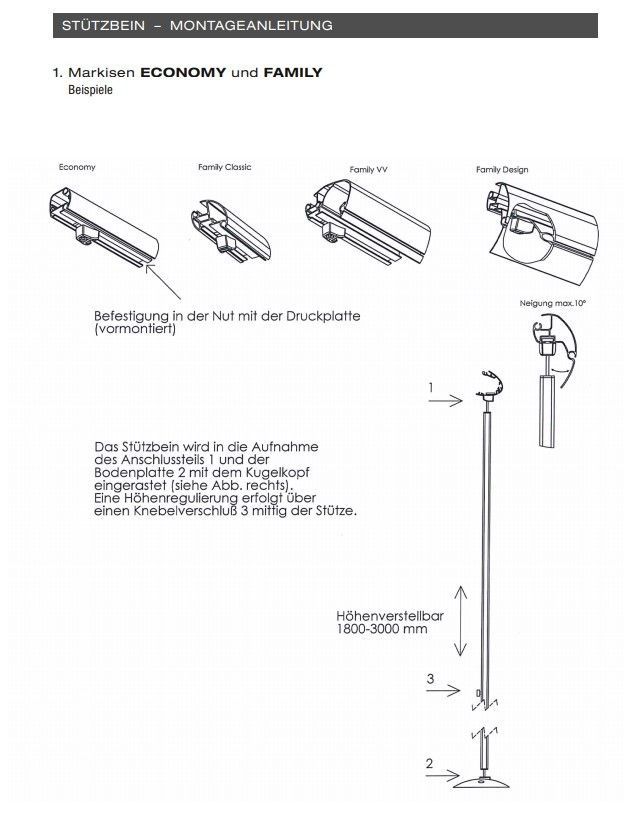 2 Markisen Stützen - Stützbeine für alle Marktüblichen Markisen und Gelenkarmmarkisen