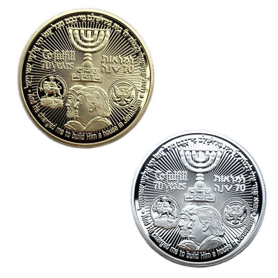 2 Medaillen USA mit Jewish Temple Jerusalem Israel Donald Trump Commemorative Challenge Coins wie abgebildet Technische Information zum Artikel Größe: 40mm Erhaltung: Polierte Platte (Optische Mängel möglich) Verpackung: Kapsel Material: Vergoldet und versilbert Ideal für Sammler oder auch einfach n