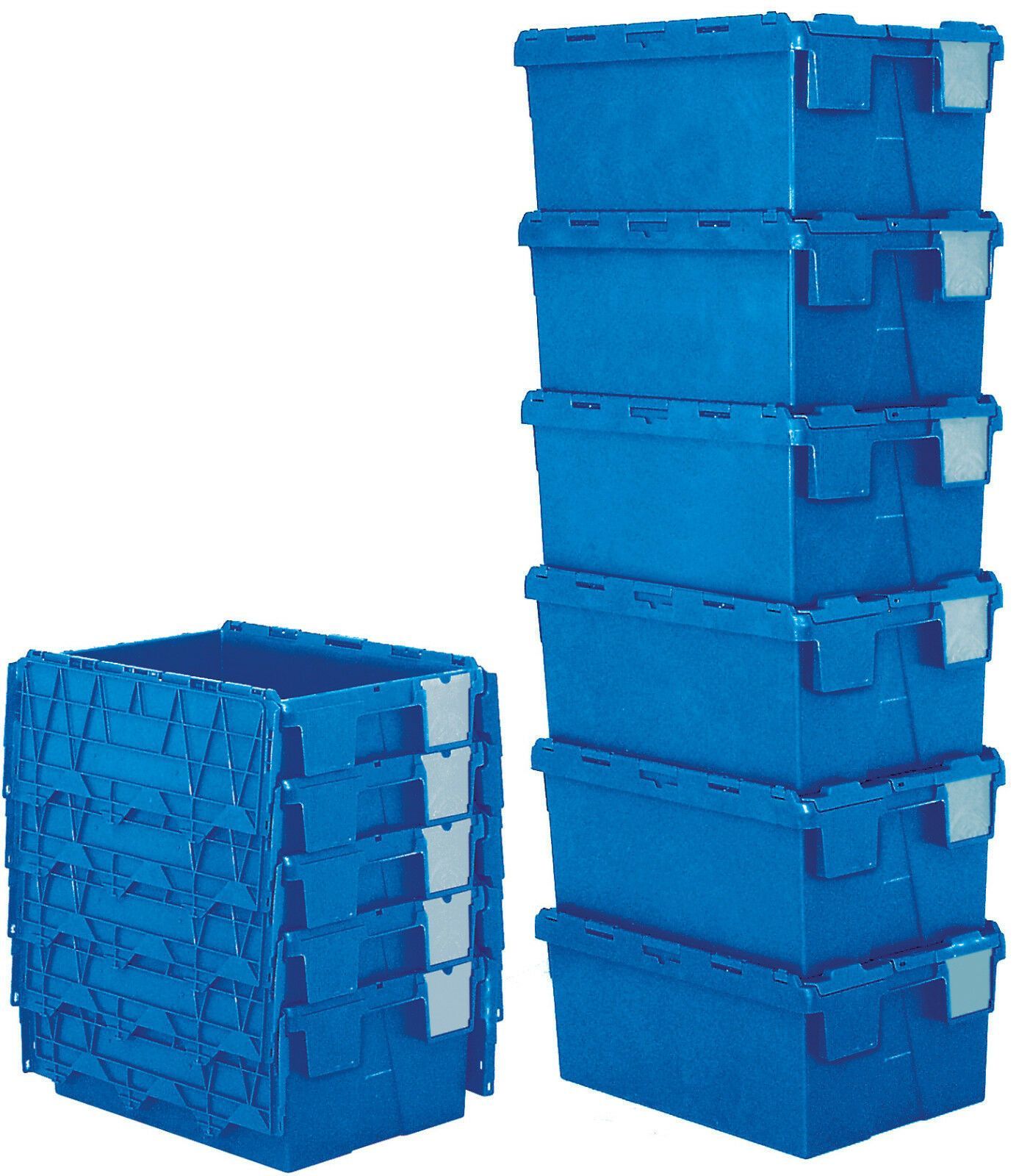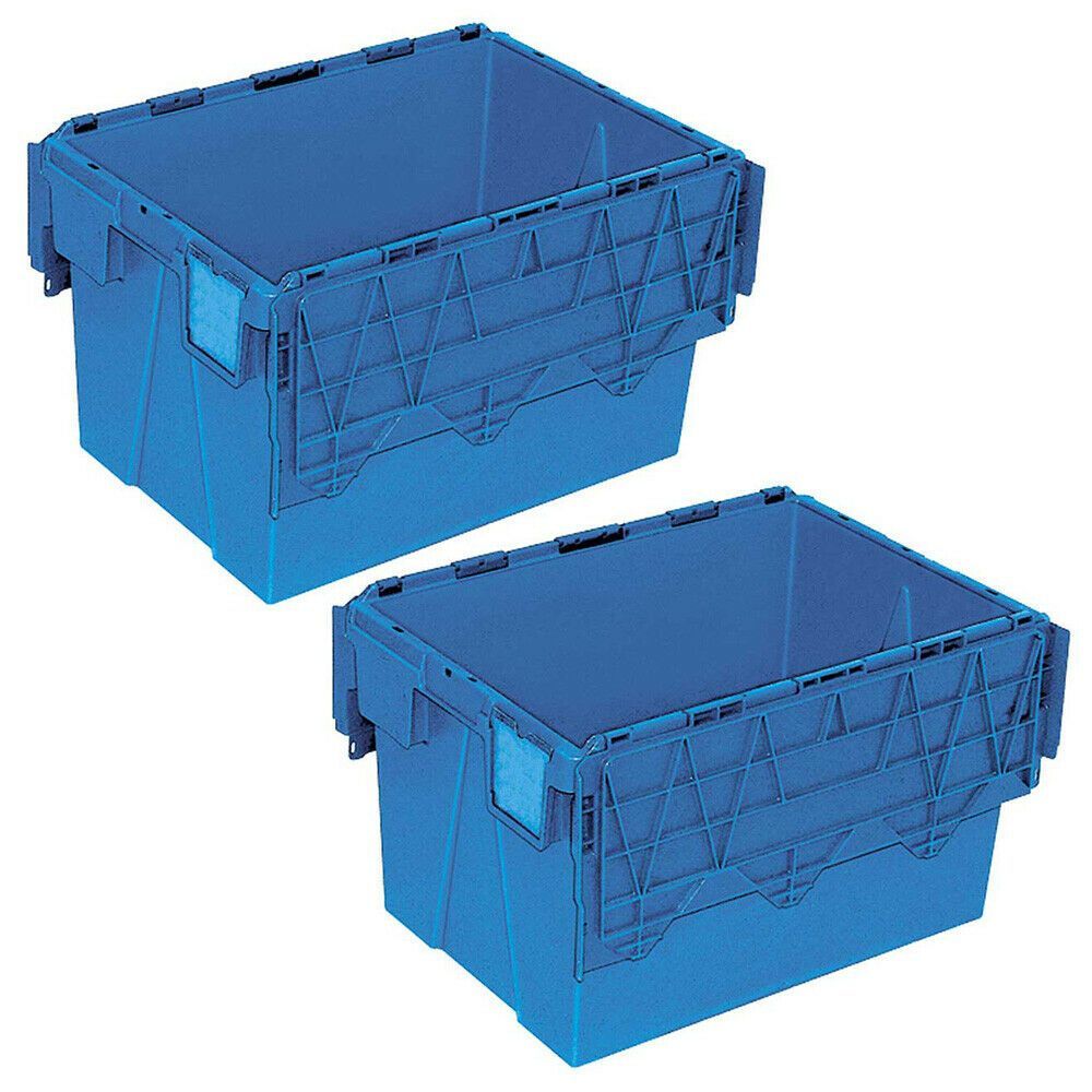 2 Mehrwegbehälter/ Versandbehälter mit Deckel, 65 l, LxBxH 600x400x365 mm, blau