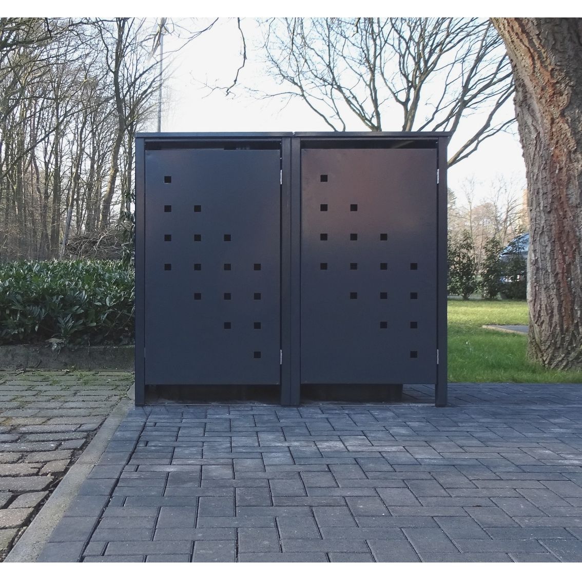 2 Mülltonnenboxen Modell No.3 Anthrazitgrau komplett in RAL 7016 für 240 Liter Mülltonnen