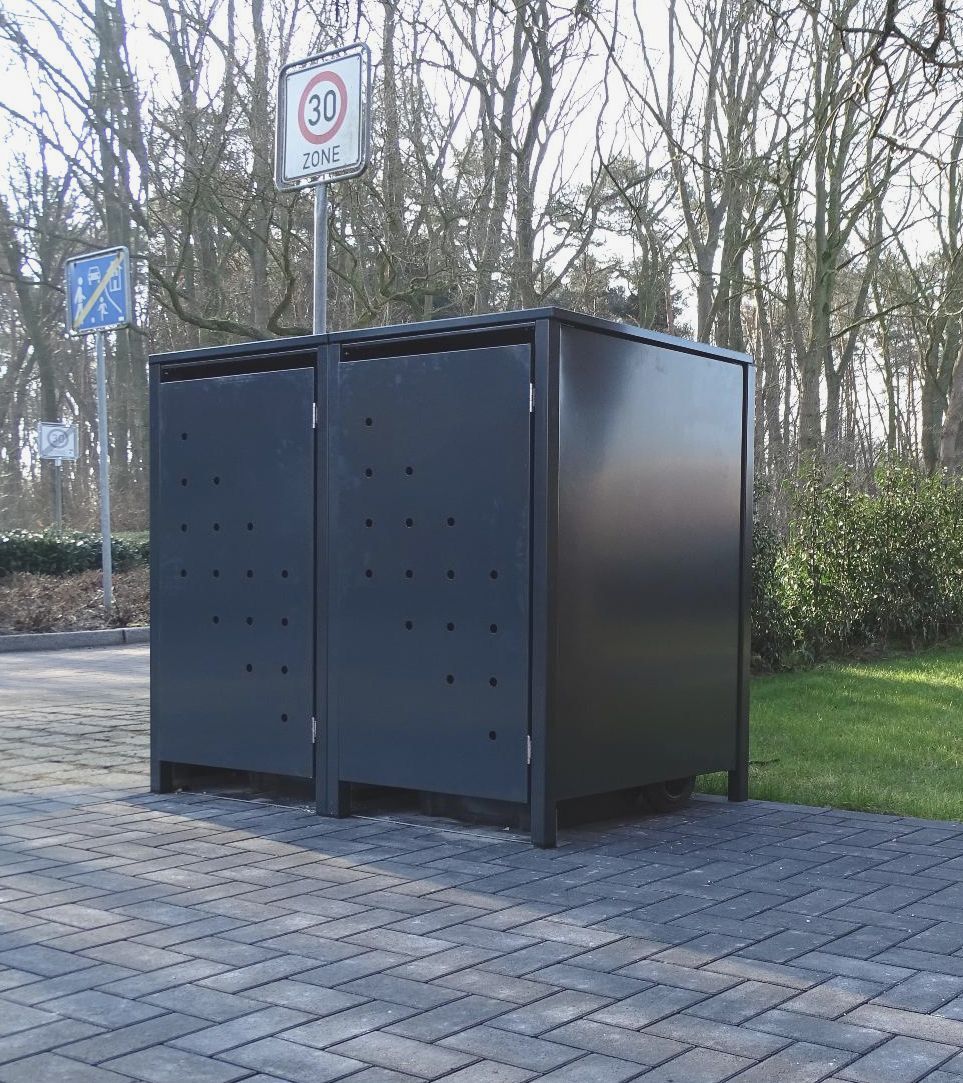2 Mülltonnenboxen Modell No.4 Anthrazitgrau komplett in RAL 7016 für 240 Liter Mülltonnen
