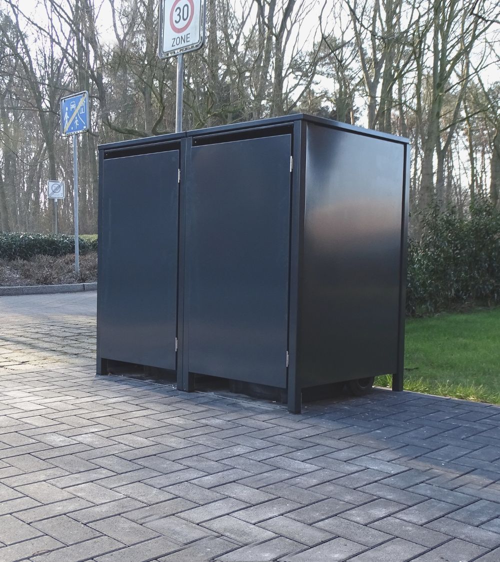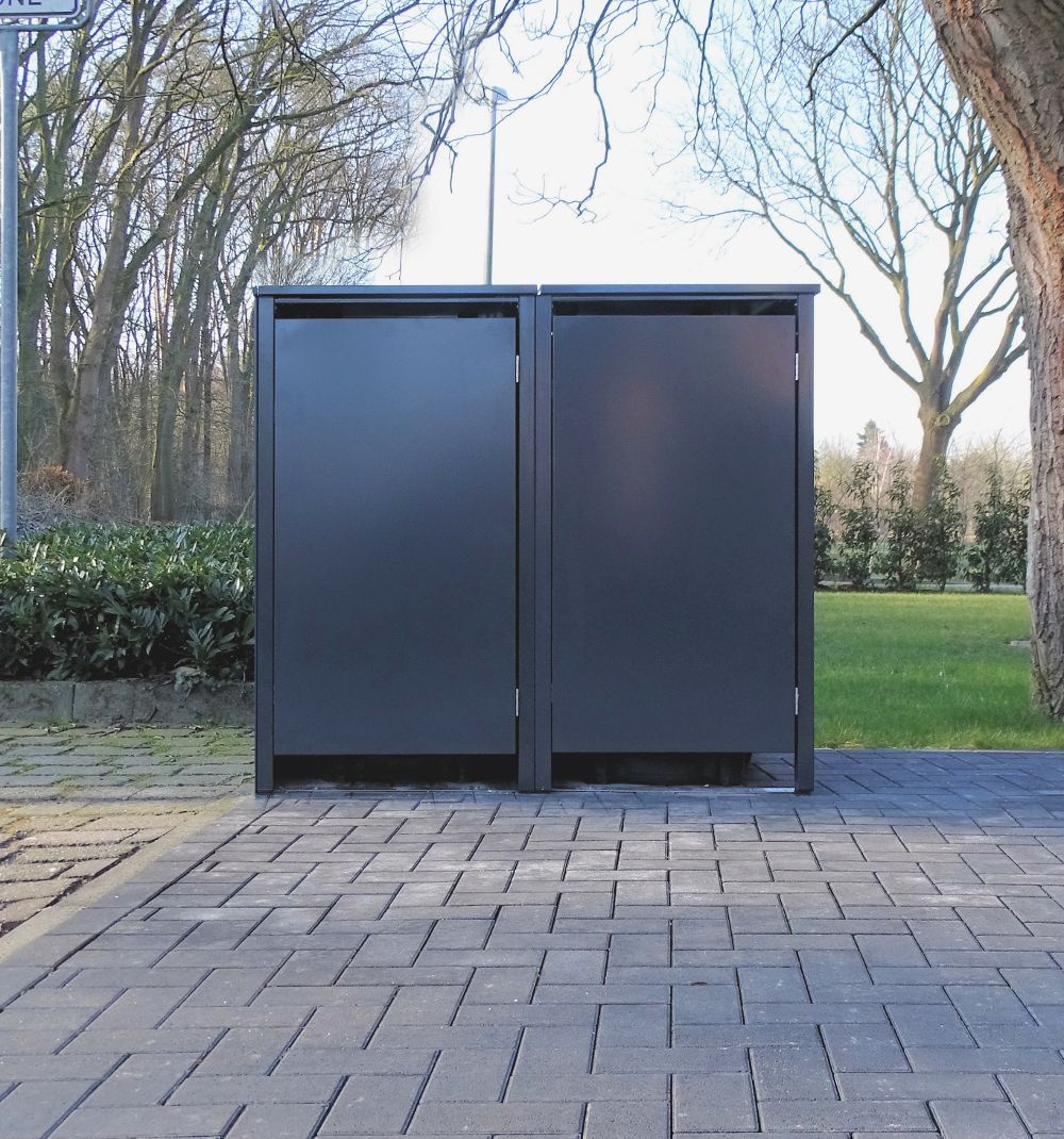 2 Mülltonnenboxen ohne Stanzung Anthrazitgrau komplett in RAL 7016 für 240 Liter Mülltonnen