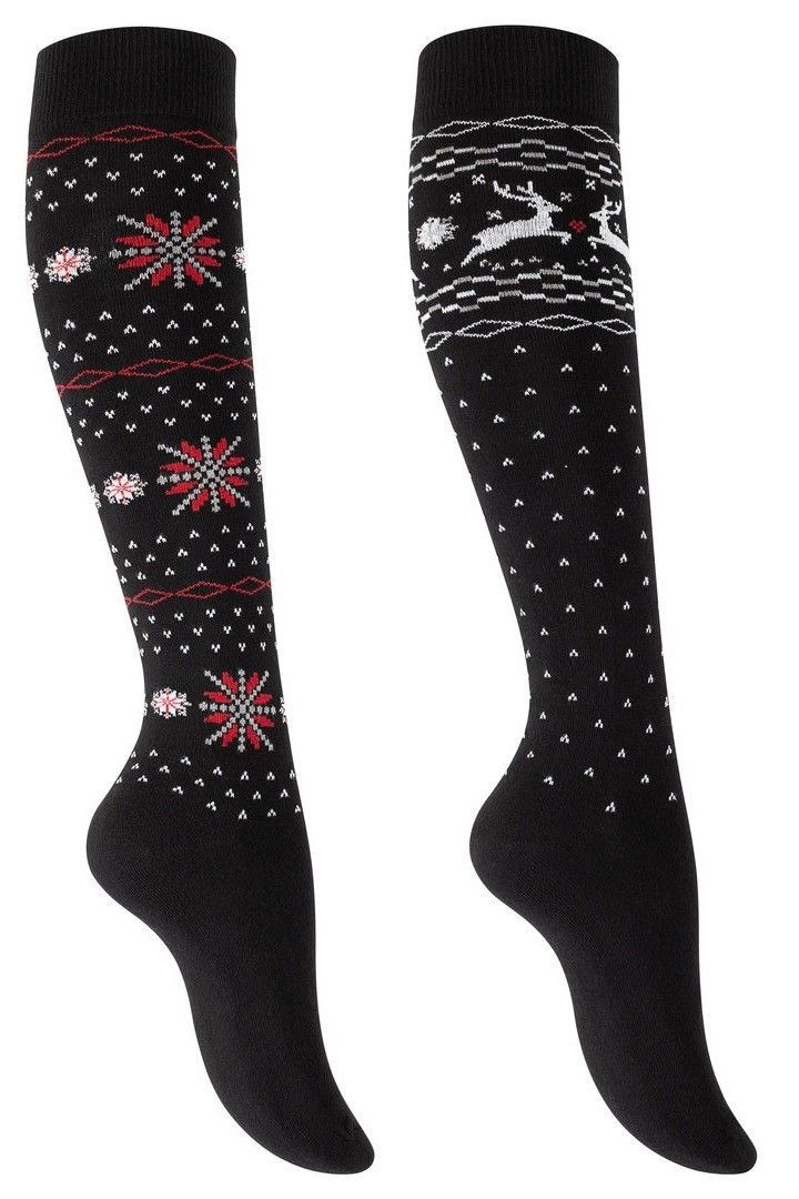 2 Paar Damen Kniestrümpfe Norwegermuster Baumwolle Winterstrümpfe