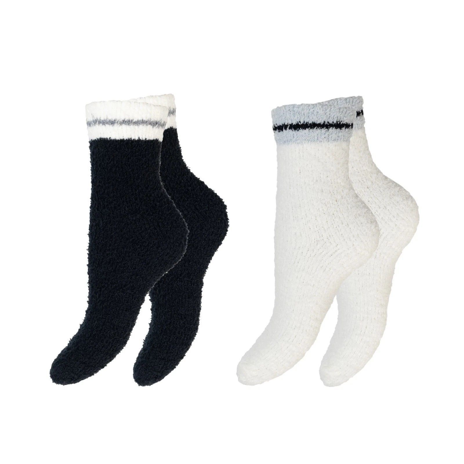 Diese gemütlichen Kinder-Kuschelsocken sorgen für warme Füße an kalten Tagen. Das weiche Material bietet ein angenehmes Tragegefühl und ist ideal für Zuhause, zum Schlafen oder als Haussocken geeignet. Perfekt für Mädchen, die es bequem und warm mögen. Produktdetails: Set: 2 Paar Kuschelsocken Für: