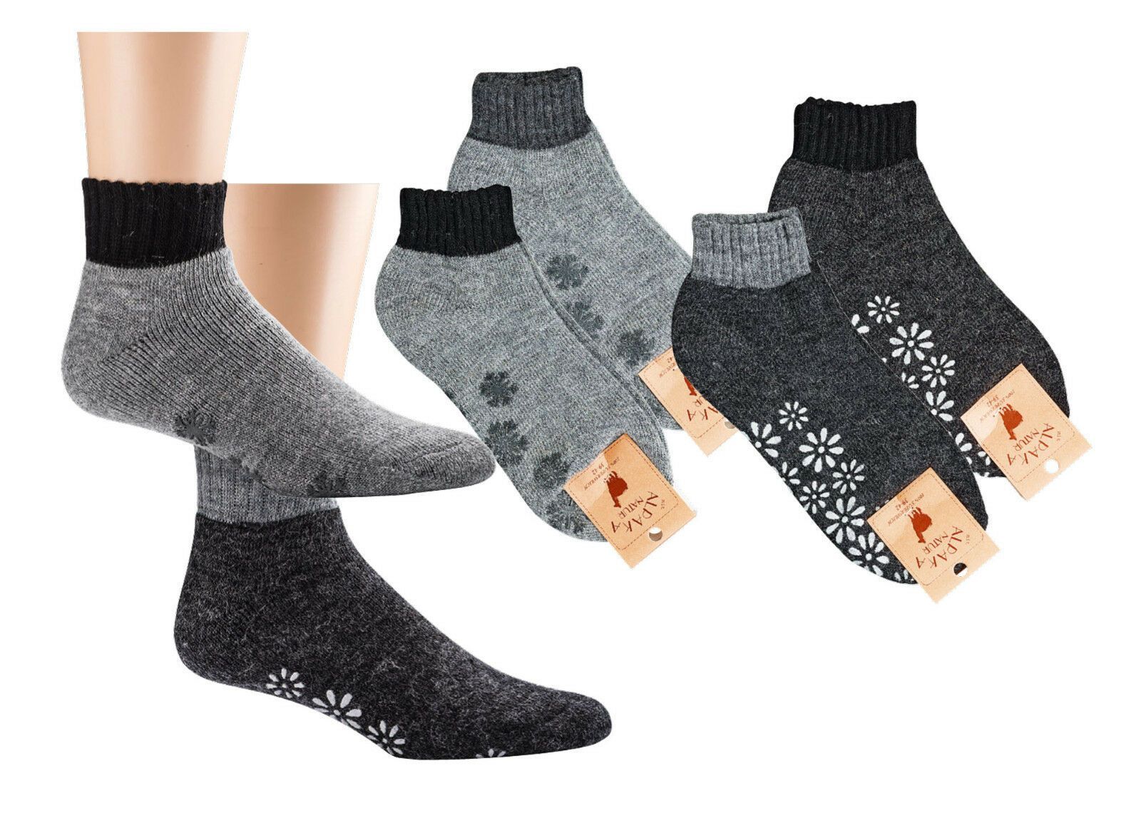2 Paar Kurz-Socken mit Alpaka Wolle und schönen ABS Blumen Eiskristallen Vollplü
